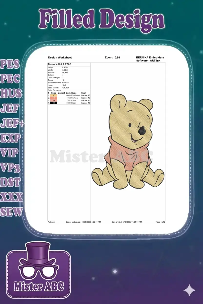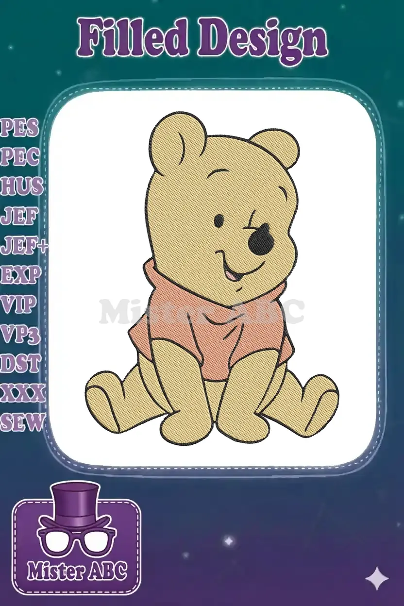 Winnie the Pooh sitting smiling cartoon character embroidery designs
