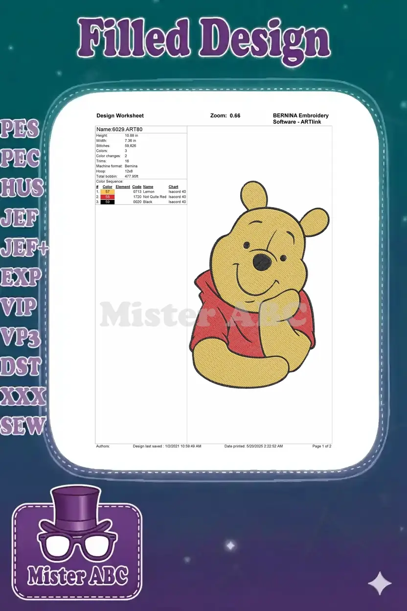 Winnie the Pooh Smiling Bear Red Shirt Embroidery Designs