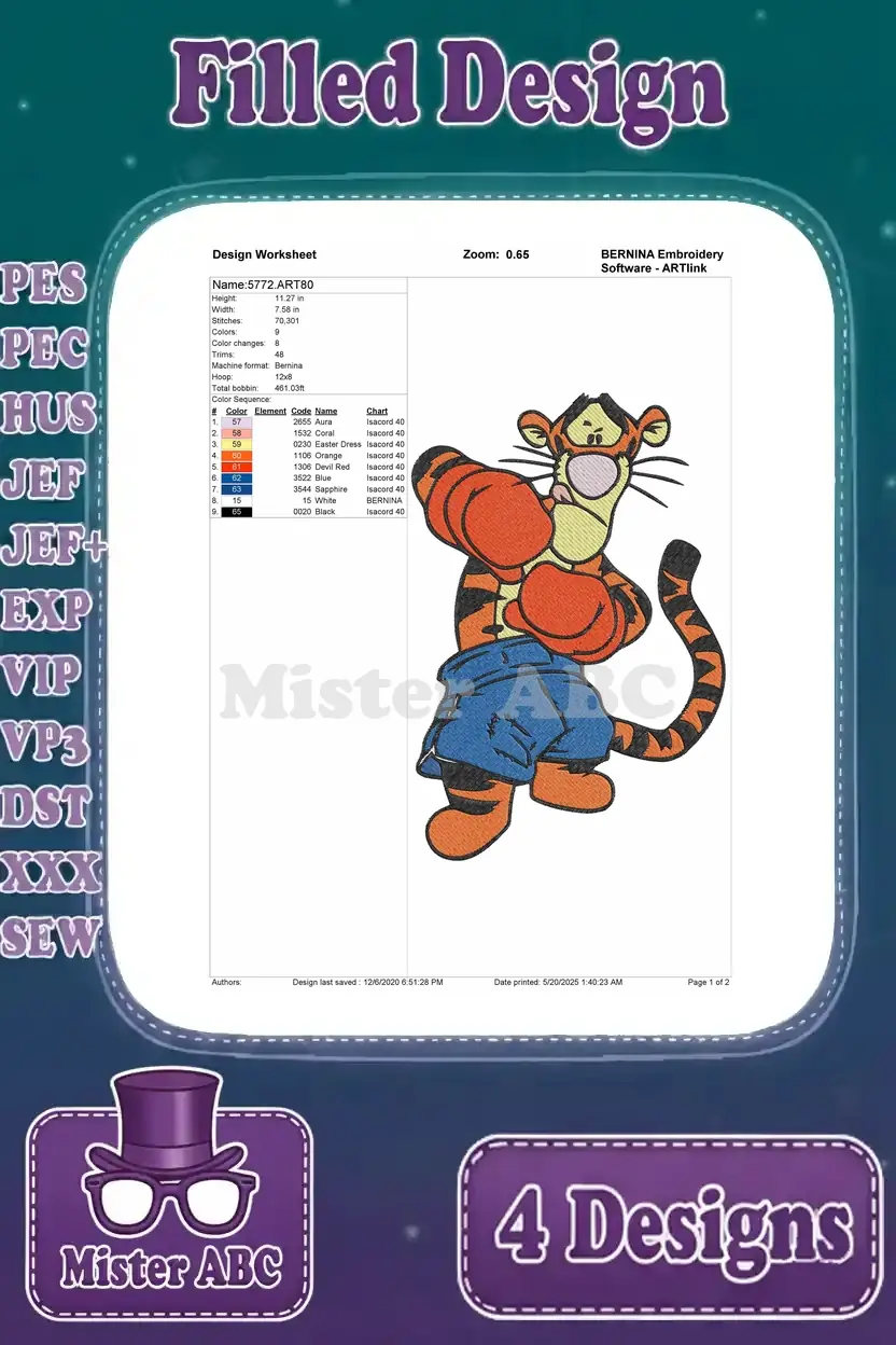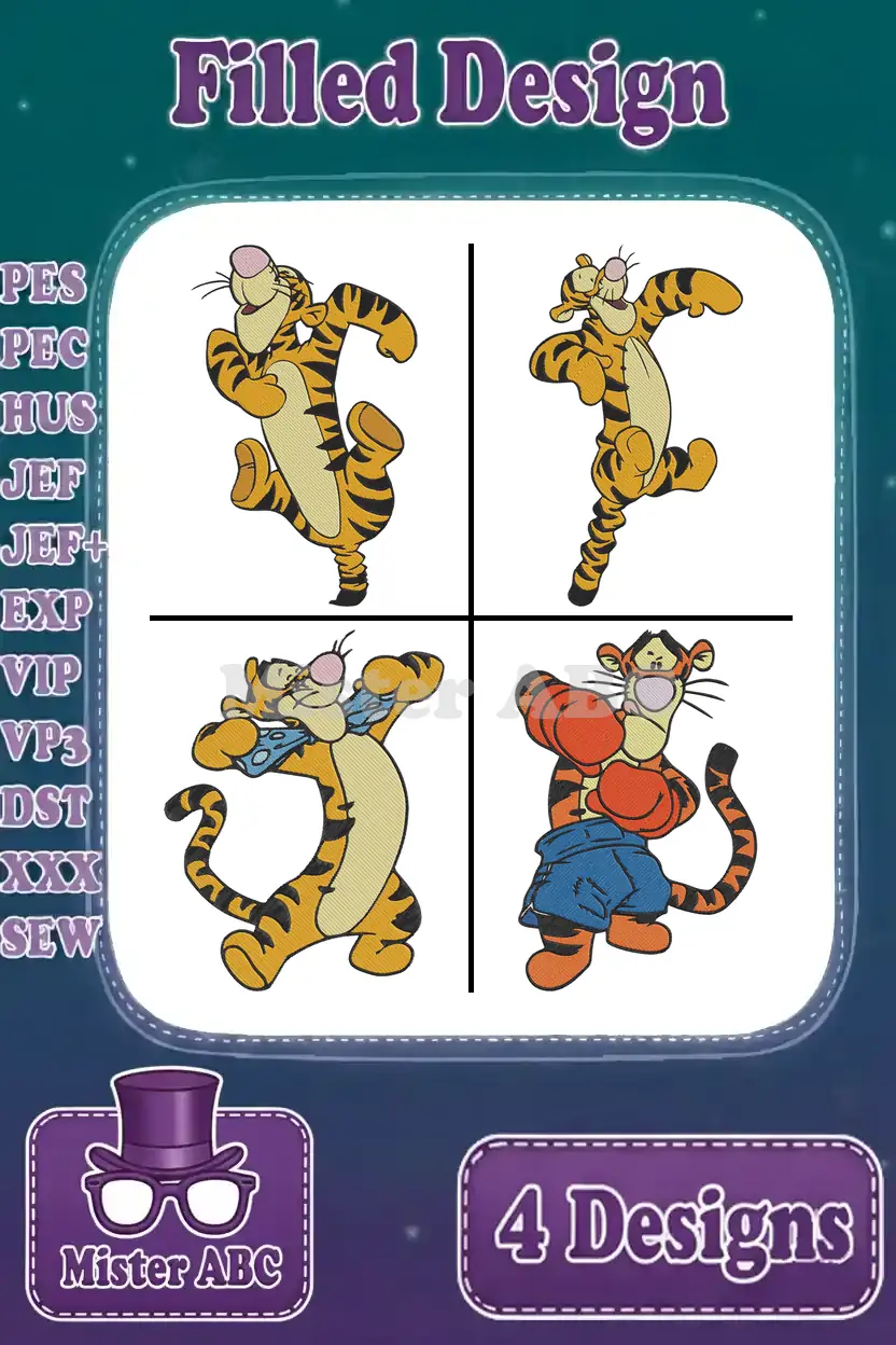 Winnie The Pooh – Tigger The Bouncing Boxer – Standing Bouncing And Boxing Glove Poses – Hundred Acre Wood – Filled Embroidery Design