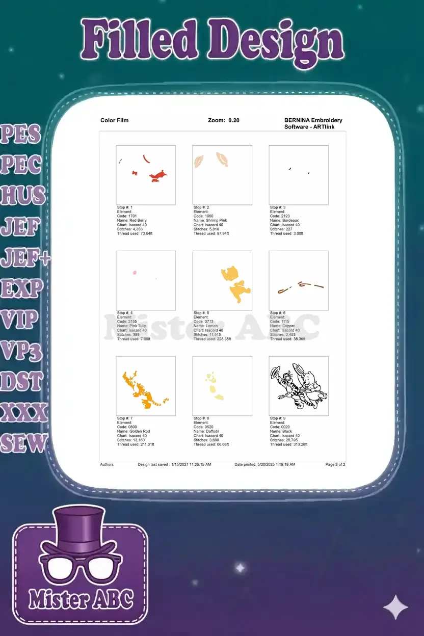 Winnie Pooh Tigger Dancing with Hats Canes Embroidery Designs