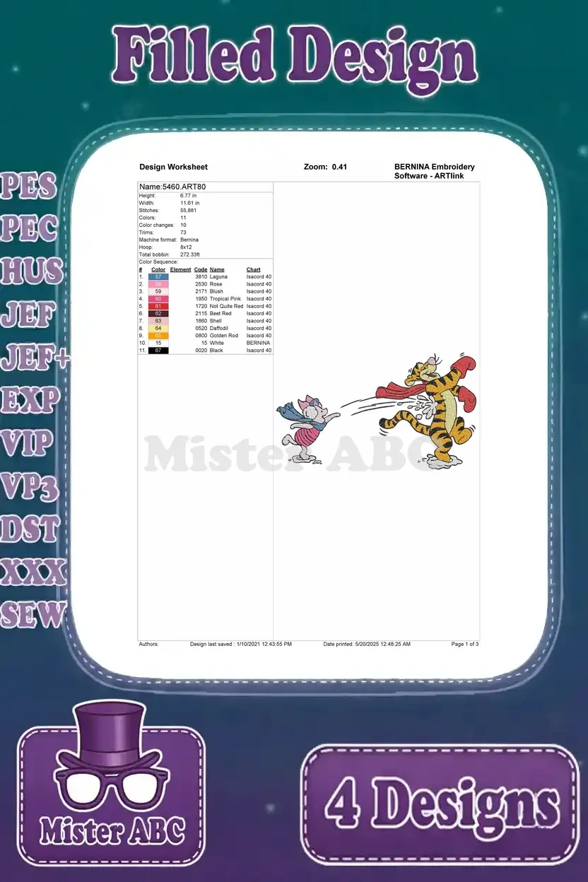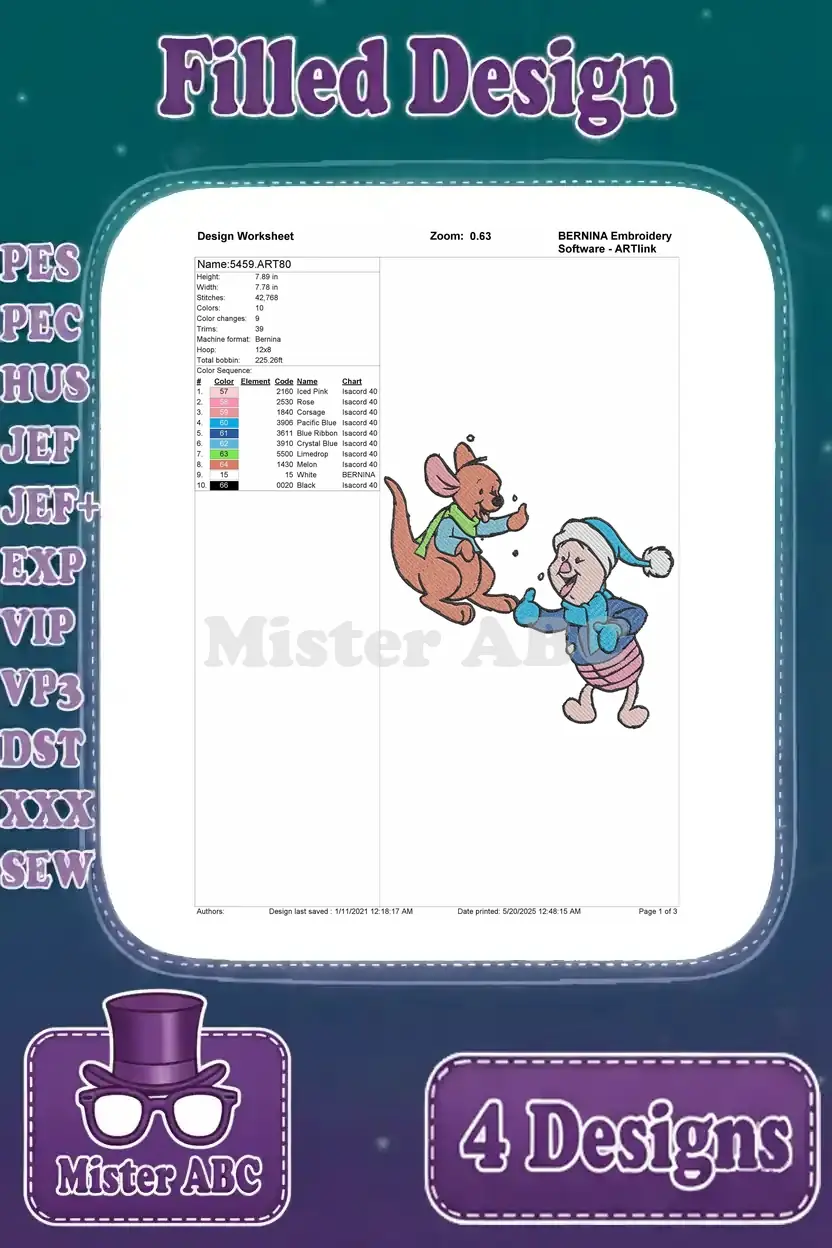 Winnie The Pooh – Tigger Eeyore Roo Piglet – Winter Fun With Scarf Sledding And Snowball Fight – Hundred Acre Wood – Filled Embroidery Design
