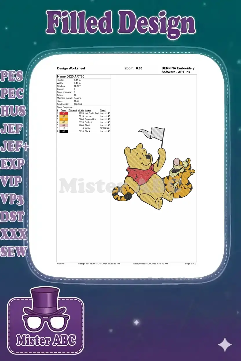 Winnie the Pooh and Tigger with Flag Embroidery Designs