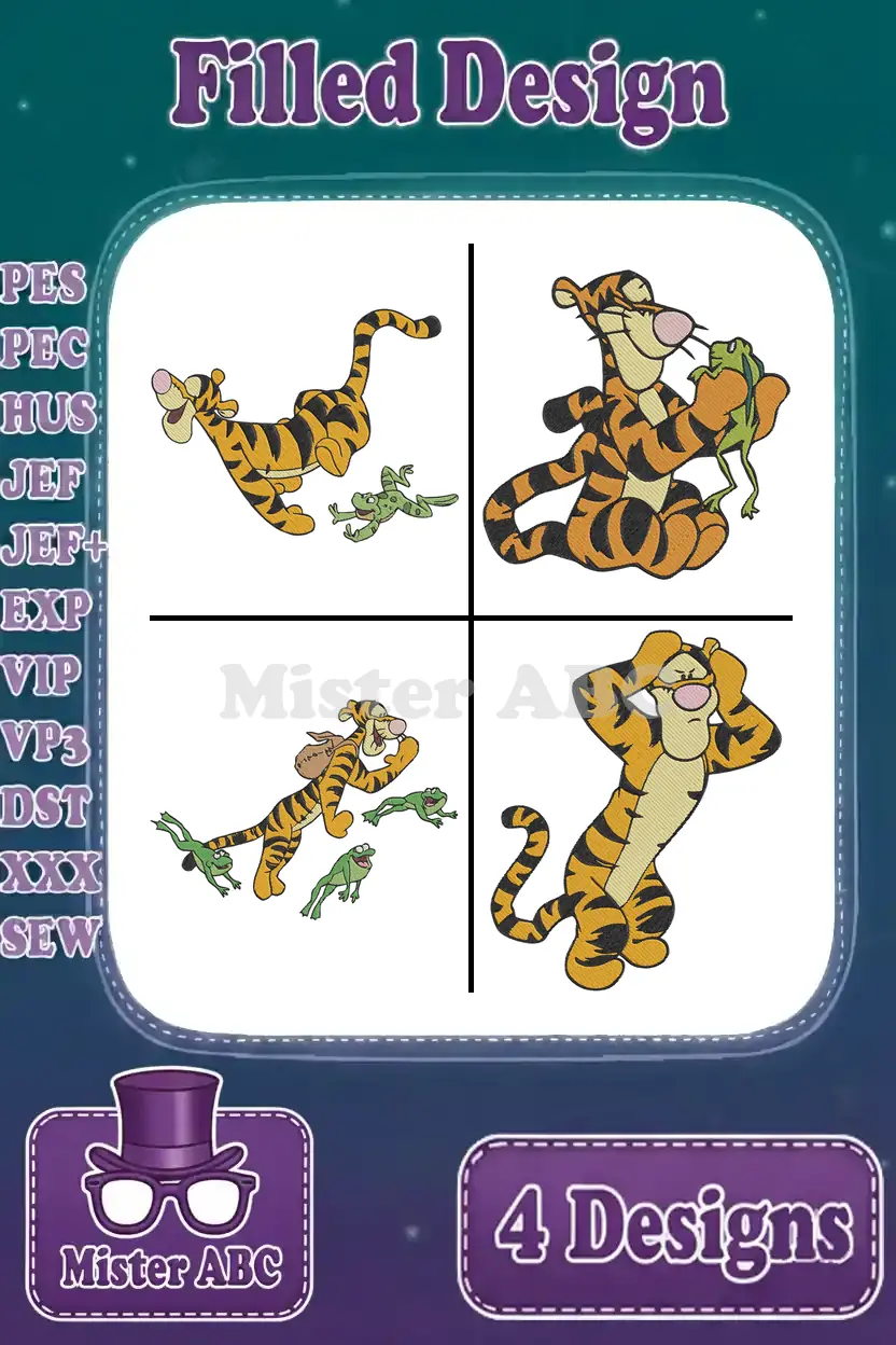 Winnie The Pooh – Tigger Frog Friends And Pumpkin Patch Fun – Playful Tiger Adventures – Hundred Acre Wood – Filled Embroidery Design