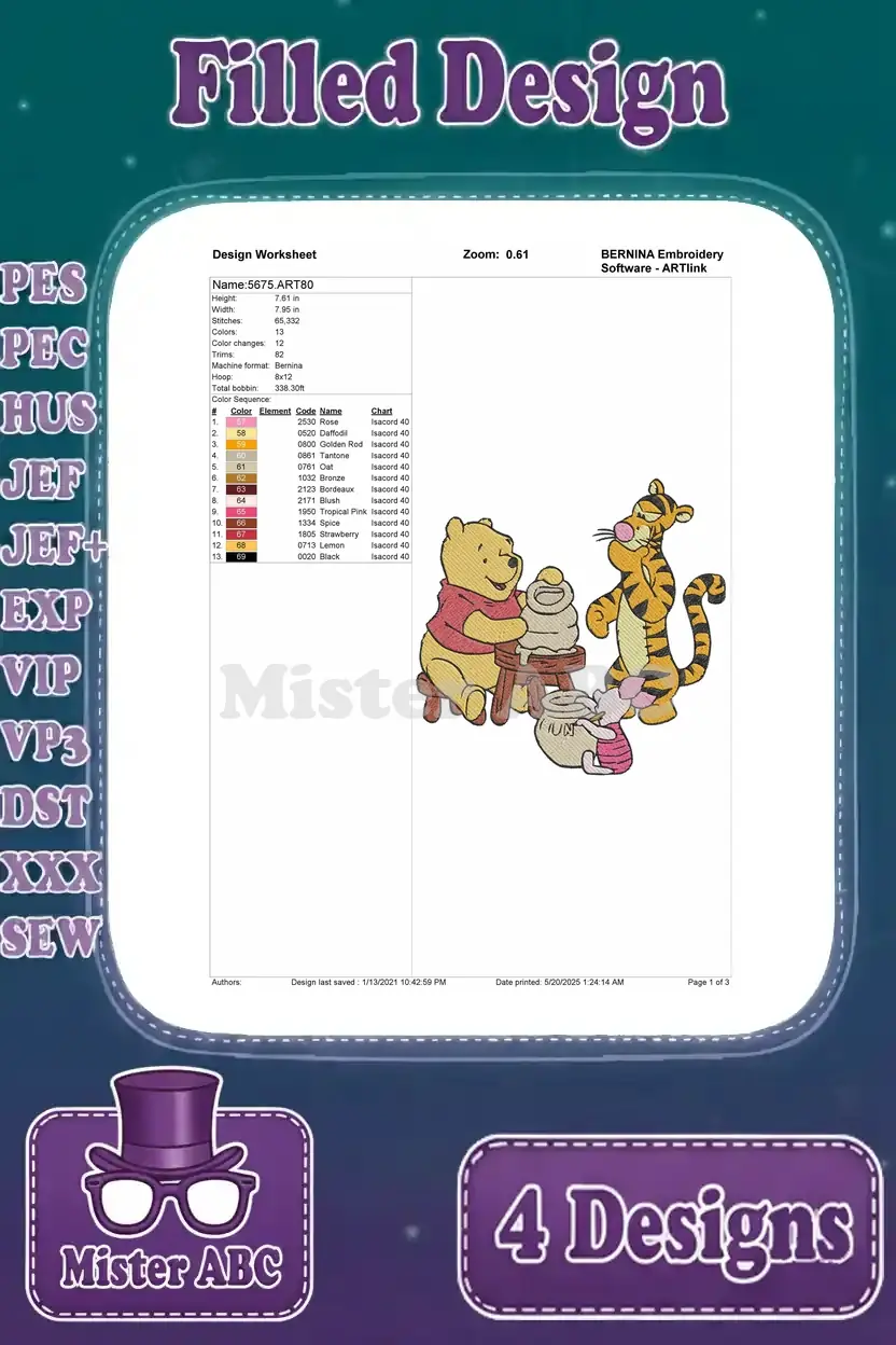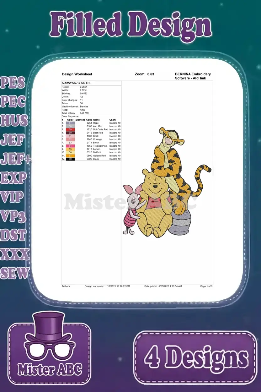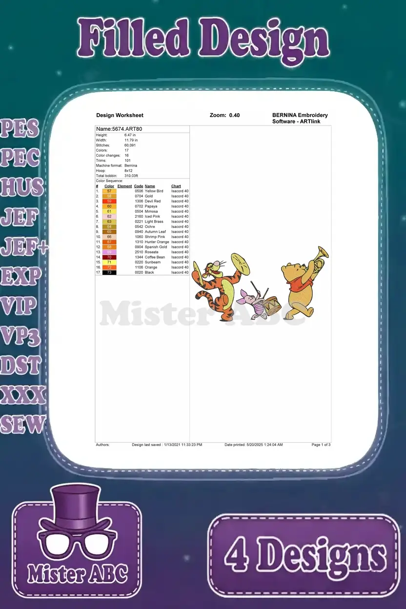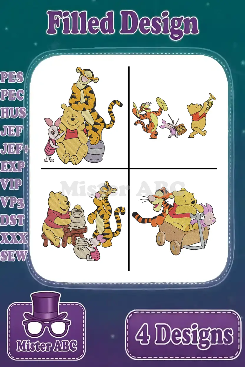 Winnie The Pooh Tigger Piglet Stacking Musical Instruments And In Wagon Playtime – Filled Embroidery Design