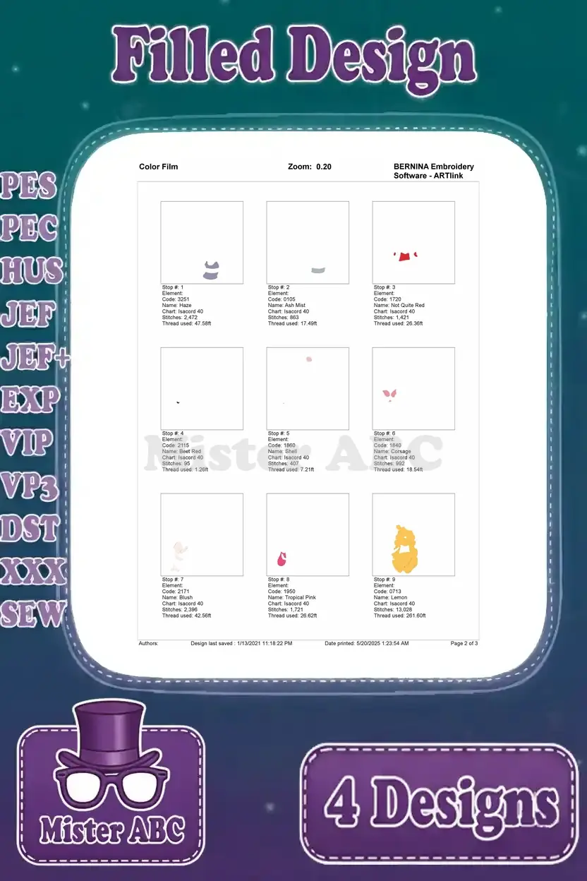 | Stitches | Colors | Thread Changes |
