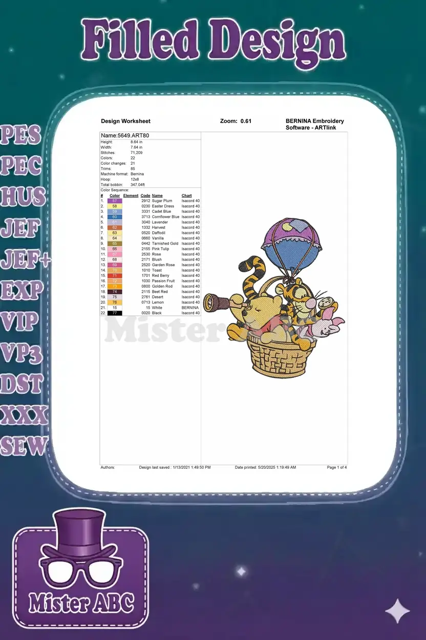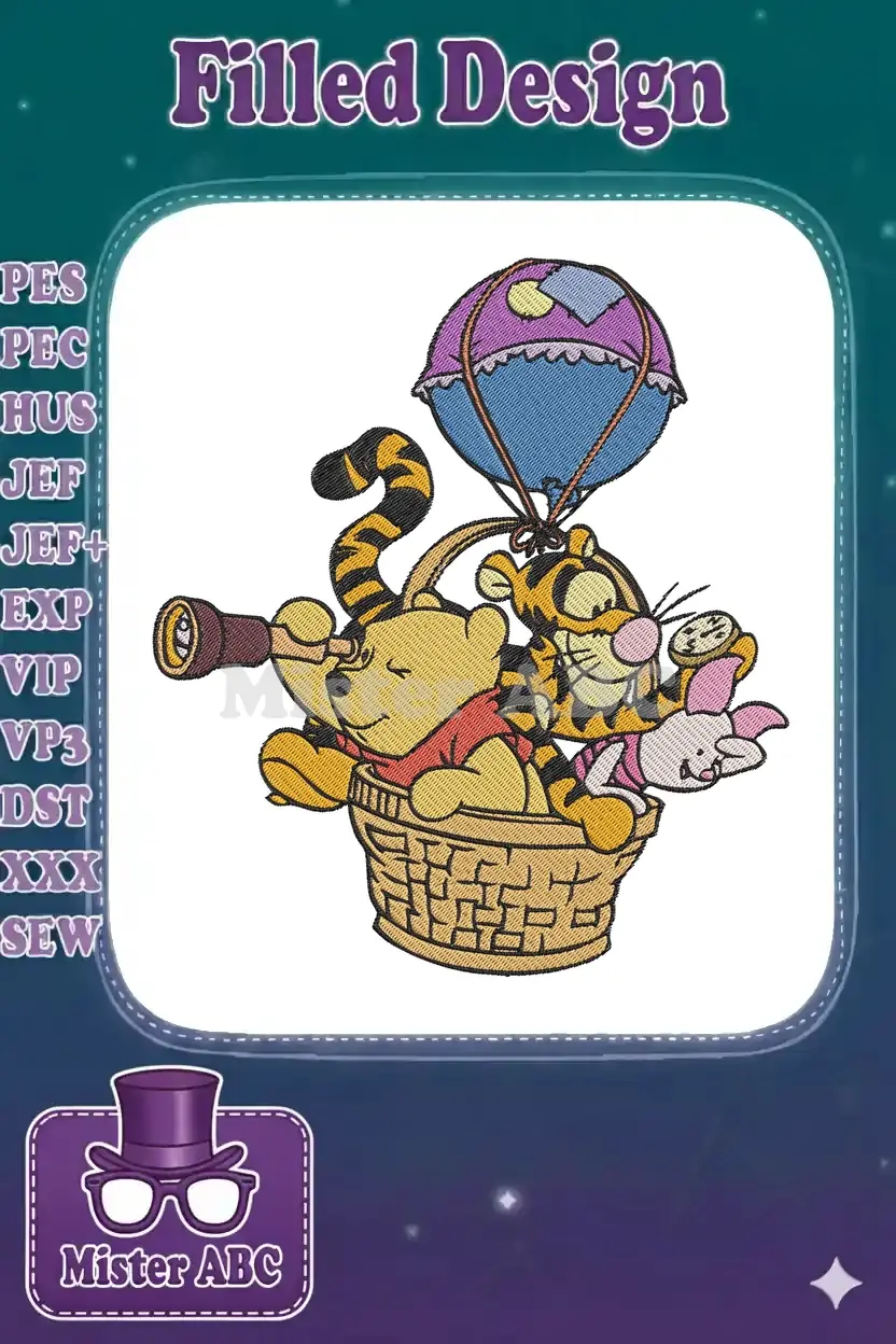 Winnie the Pooh Tigger Piglet Hot Air Balloon Adventure embroidery designs