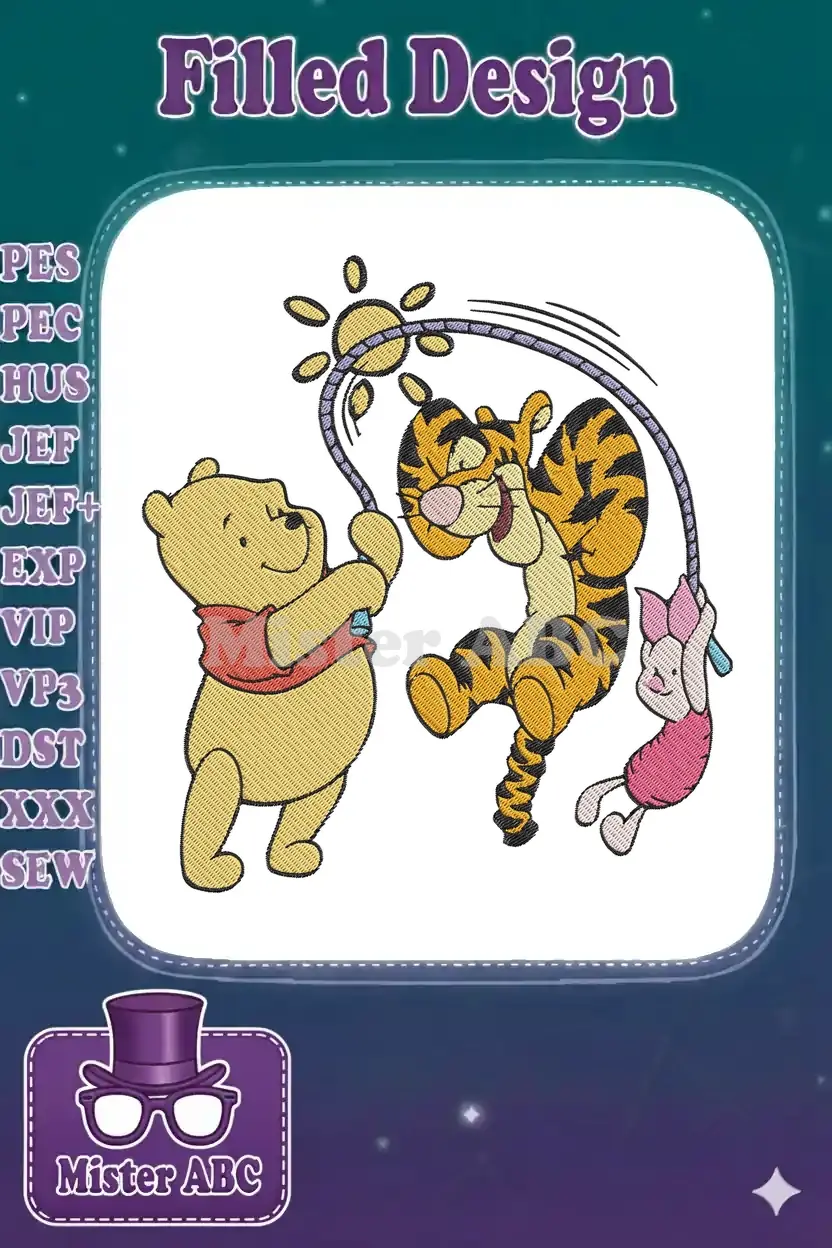 Winnie the Pooh Tigger Piglet Playing Jump Rope Embroidery Designs