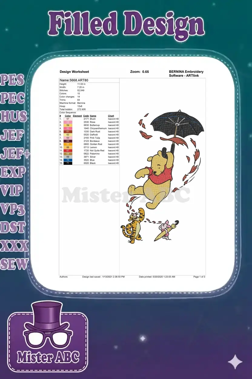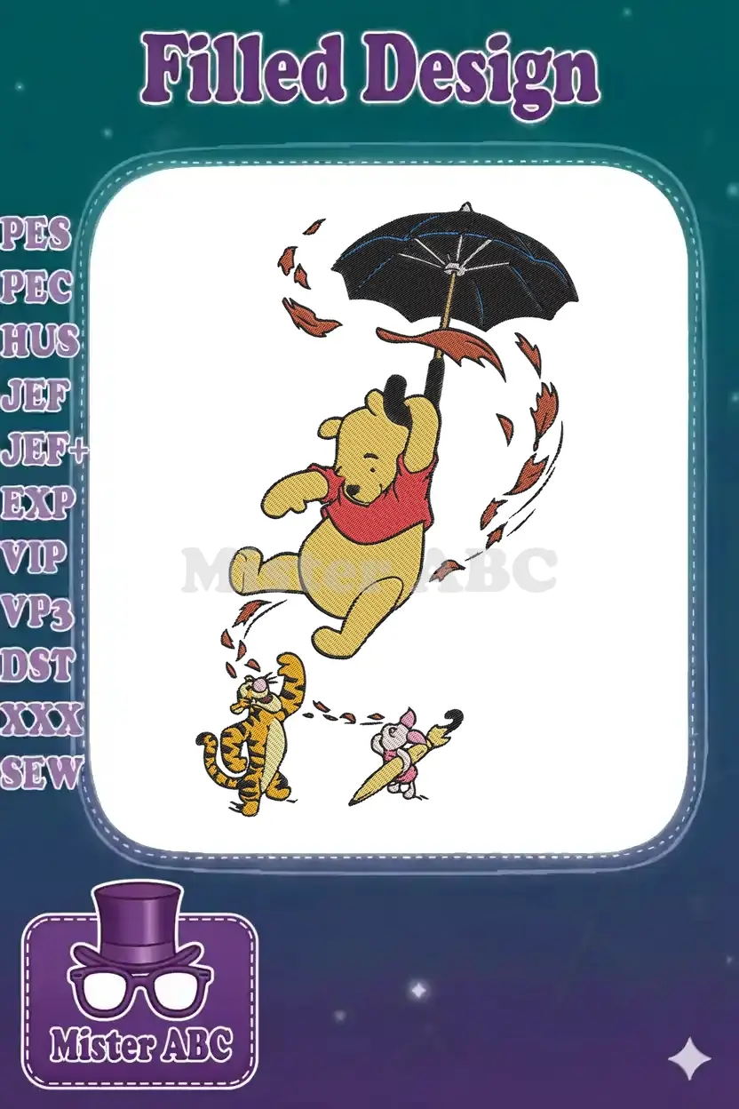 Winnie Pooh Tigger Piglet autumn adventure umbrella flying embroidery designs - Instant Download Winnie Pooh Tigger Piglet autumn adventure umbrella flying embroidery designs – Instant Download