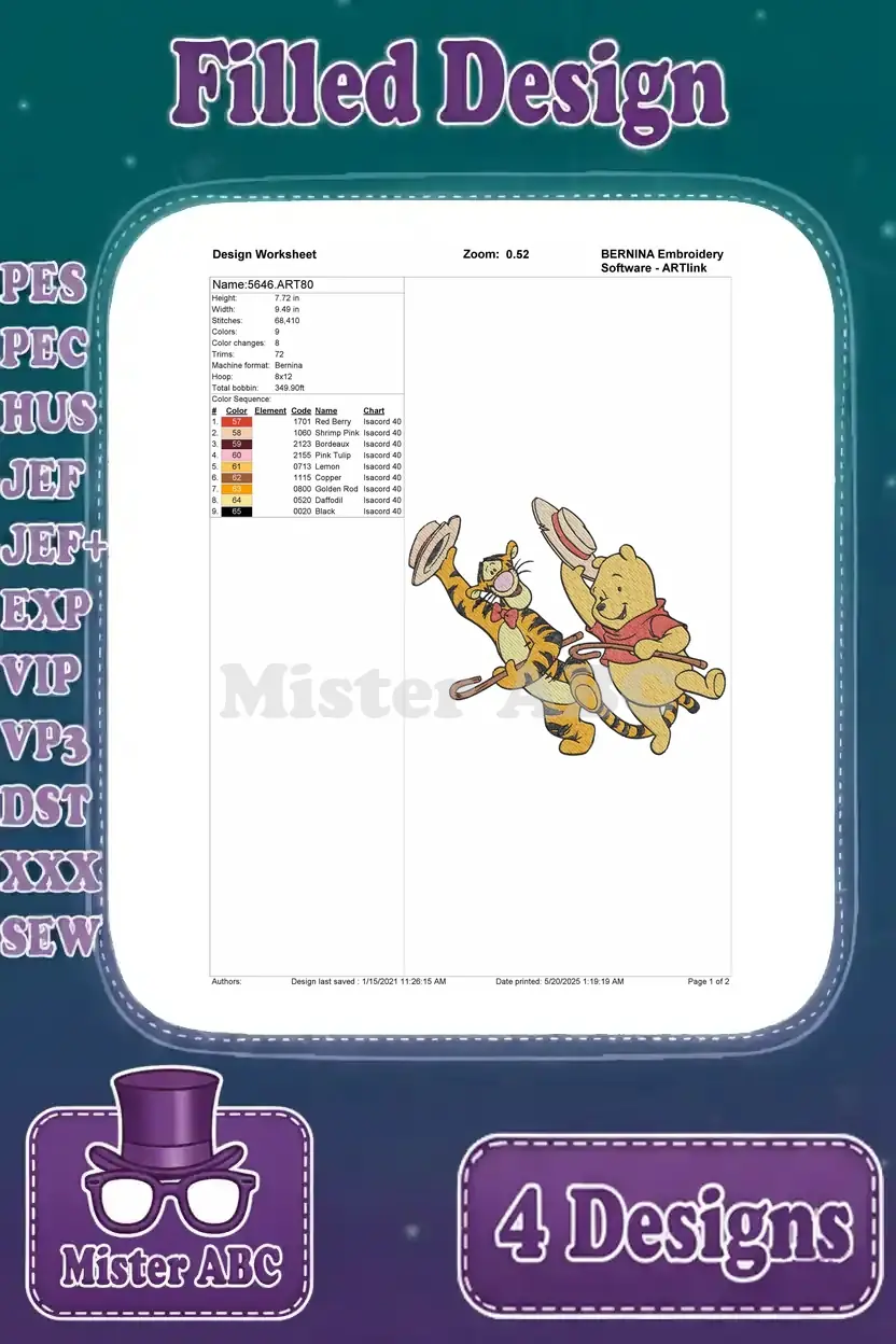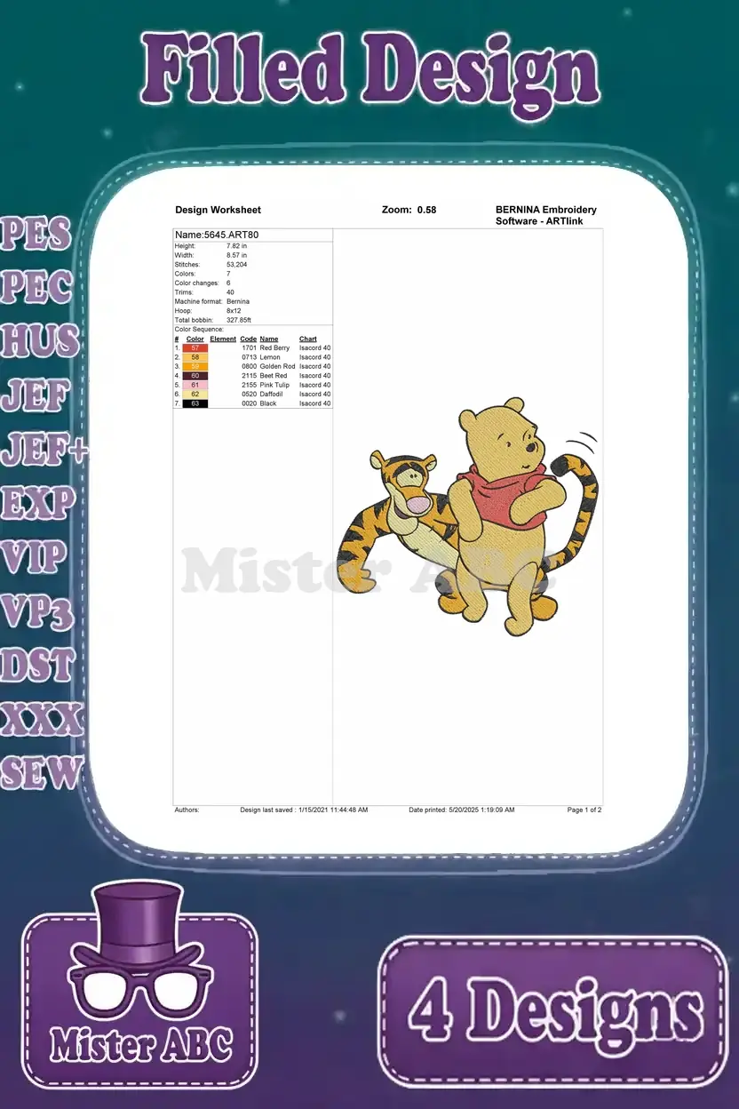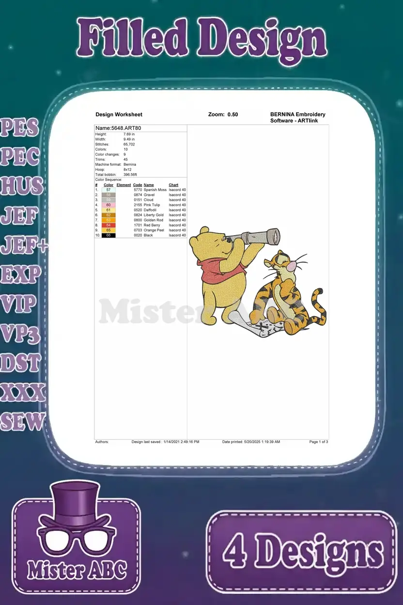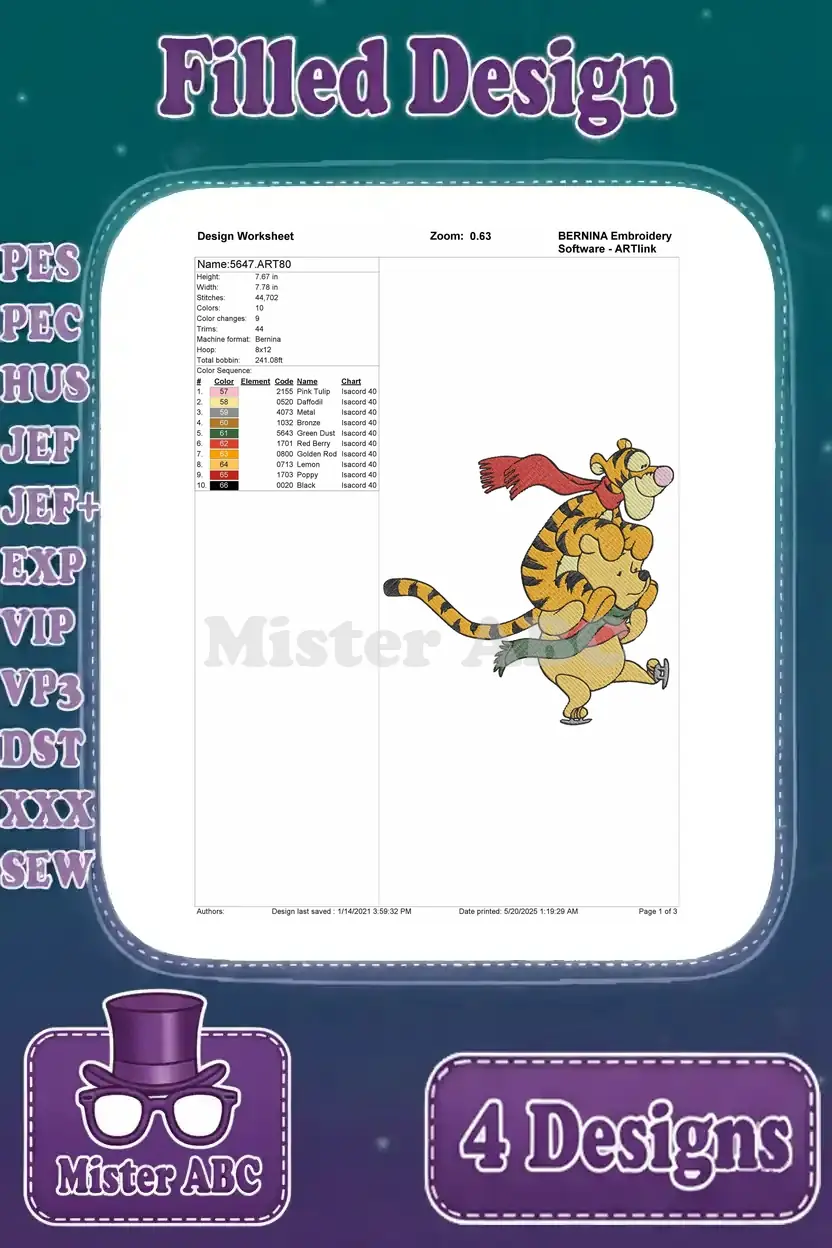 Winnie The Pooh Tigger Rabbit Winter Scarf And Pooh Tigger With Tools Scenes – Filled Embroidery Design