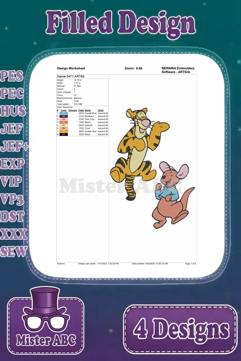 Winnie The Pooh – Tigger And Roo The Kangaroo – Honey Pot Autumn Play And Bouncing Fun Times – Hundred Acre Wood Pals – Filled Embroidery Design