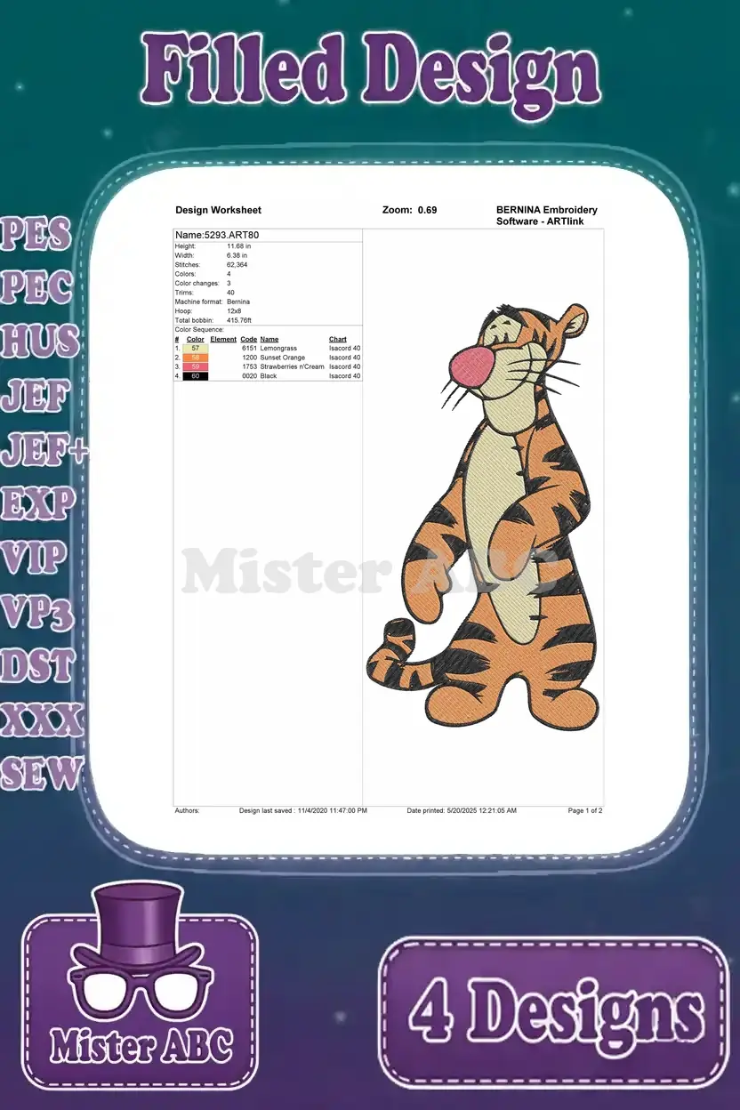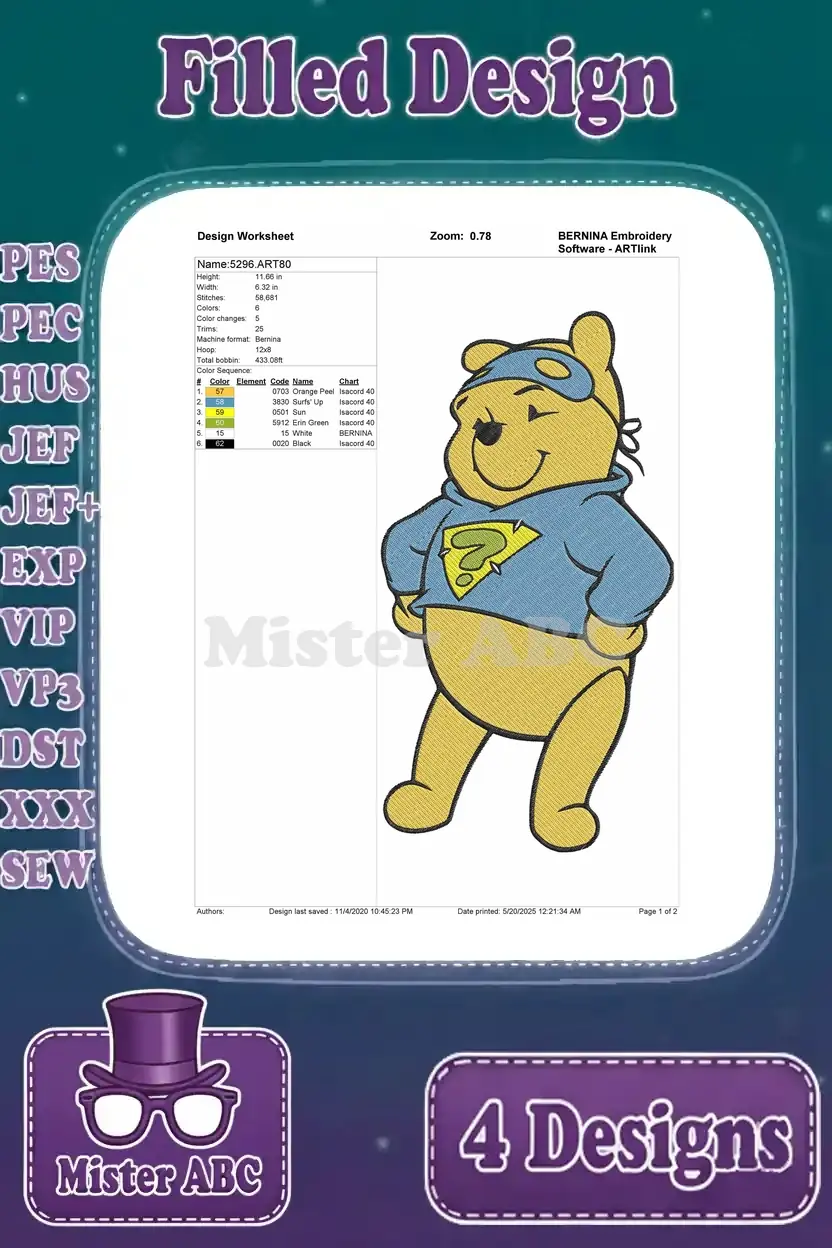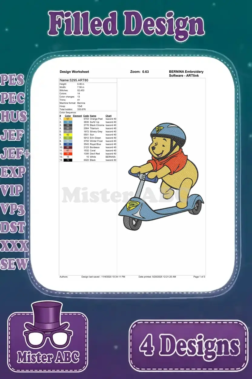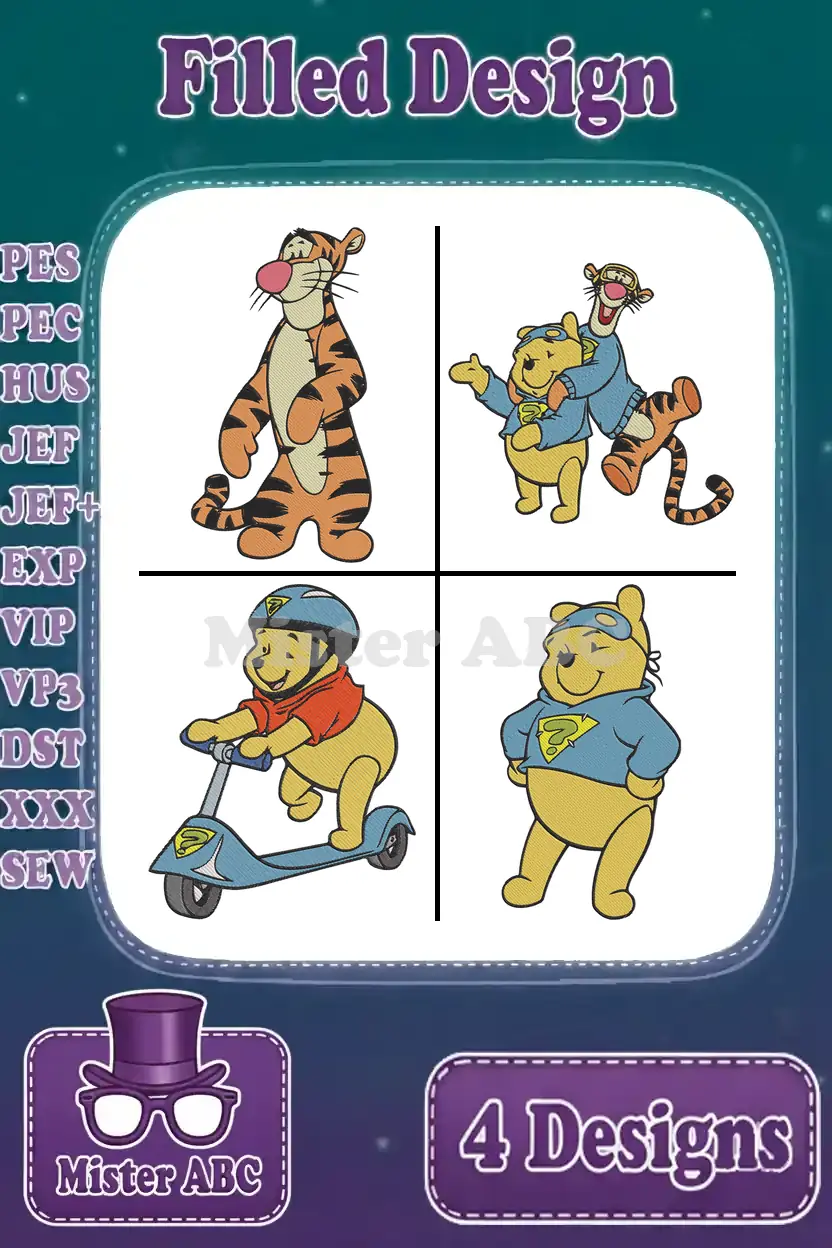 Winnie The Pooh Tigger Standing Pooh On Scooter And Pooh Tigger Hugging Scenes – Filled Embroidery Design