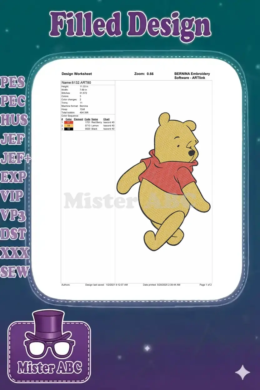 Winnie the Pooh Walking Classic Cartoon Character Embroidery Designs