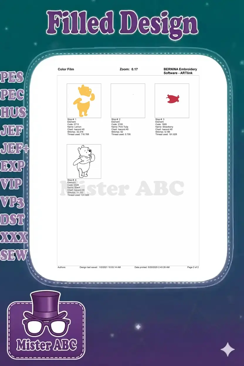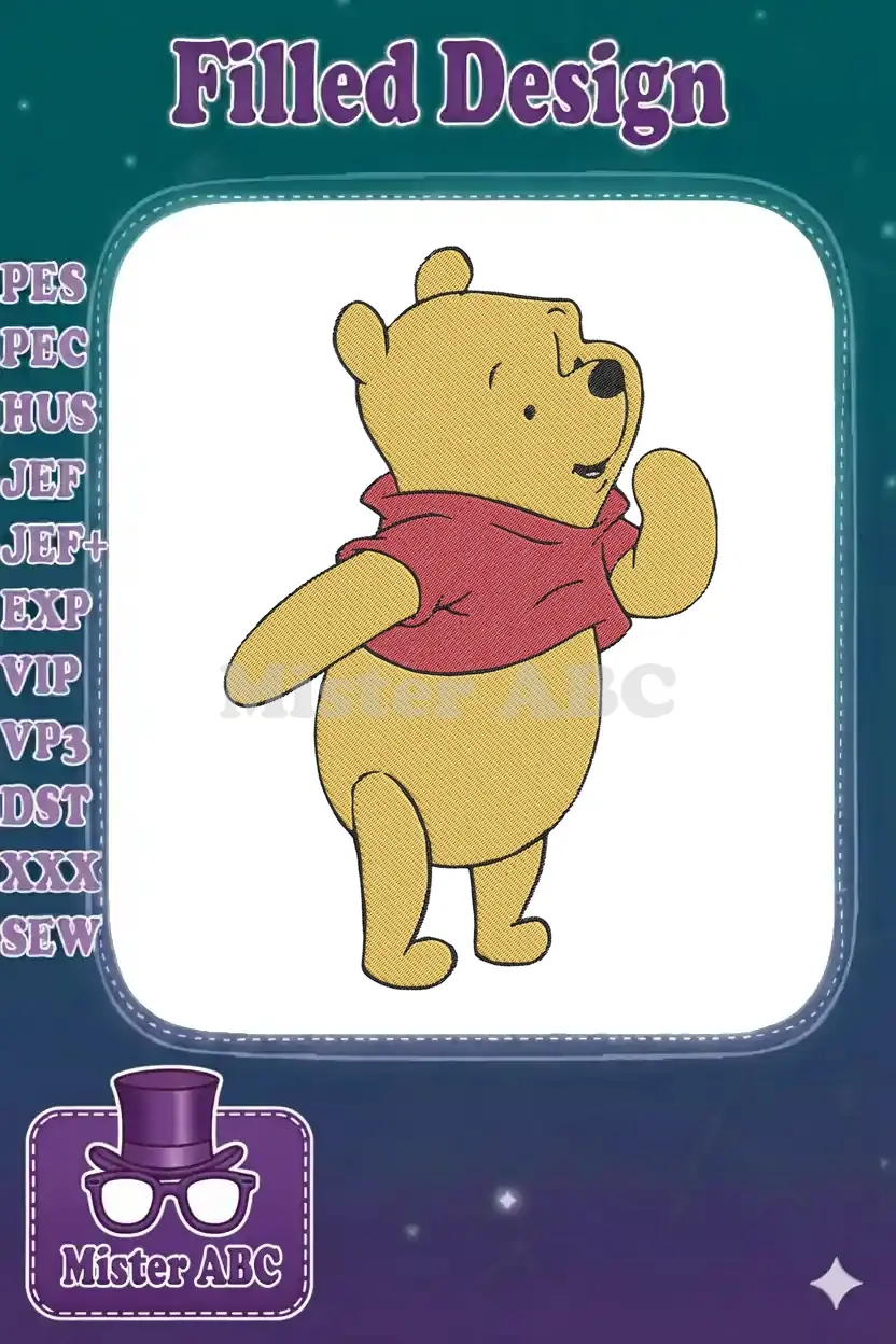 Winnie the Pooh waving yellow bear red shirt embroidery designs