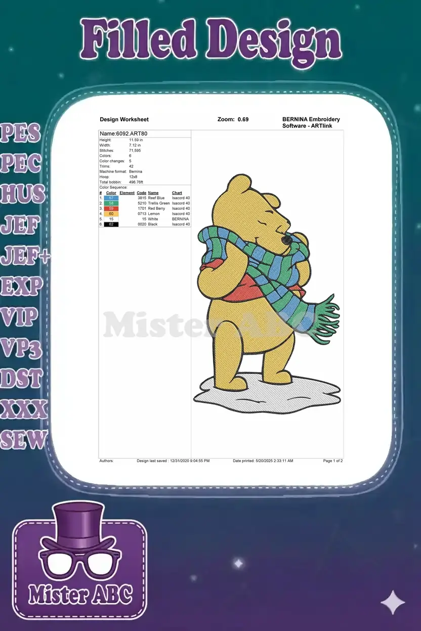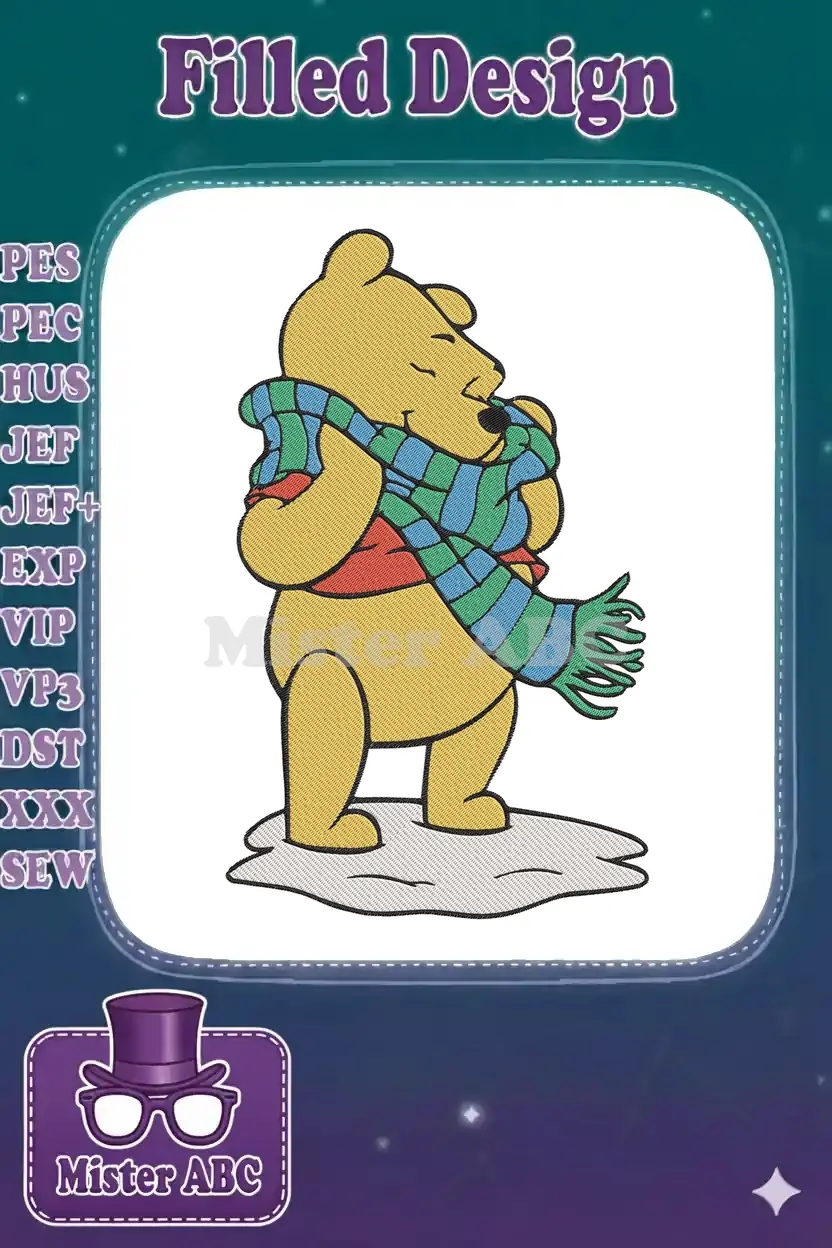 Winnie the Pooh winter scarf embroidery designs for kids