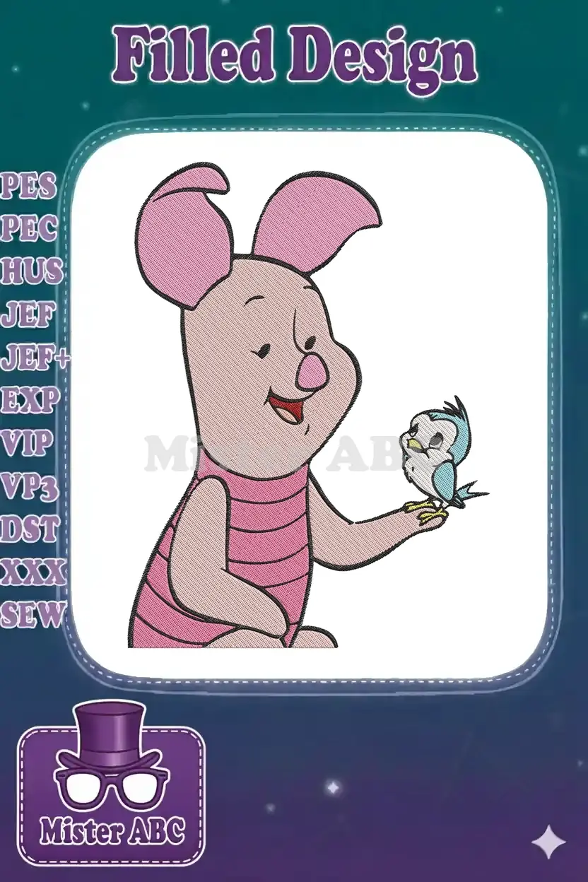 Winnie the Pooh’s Piglet with blue bird friendly embroidery designs