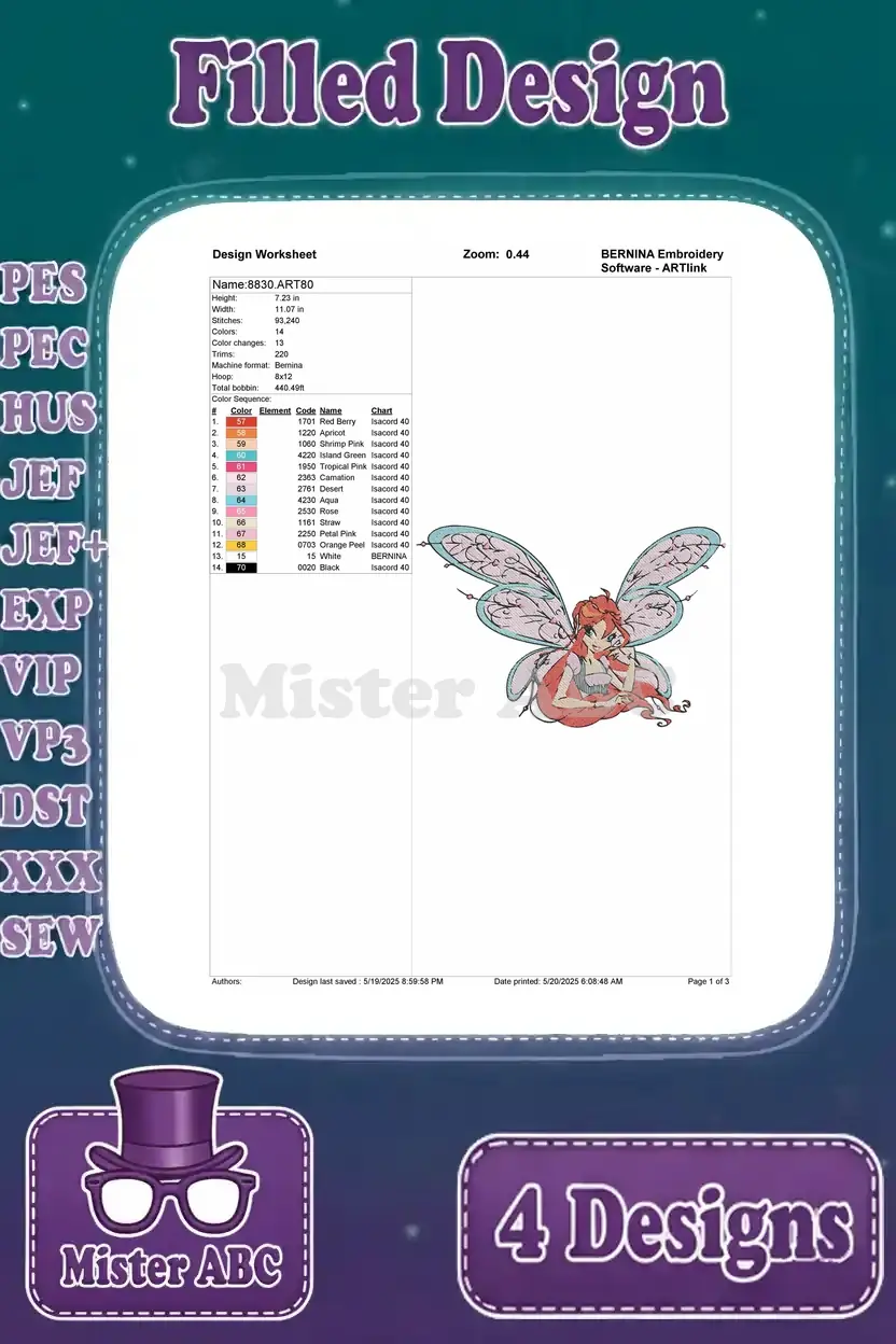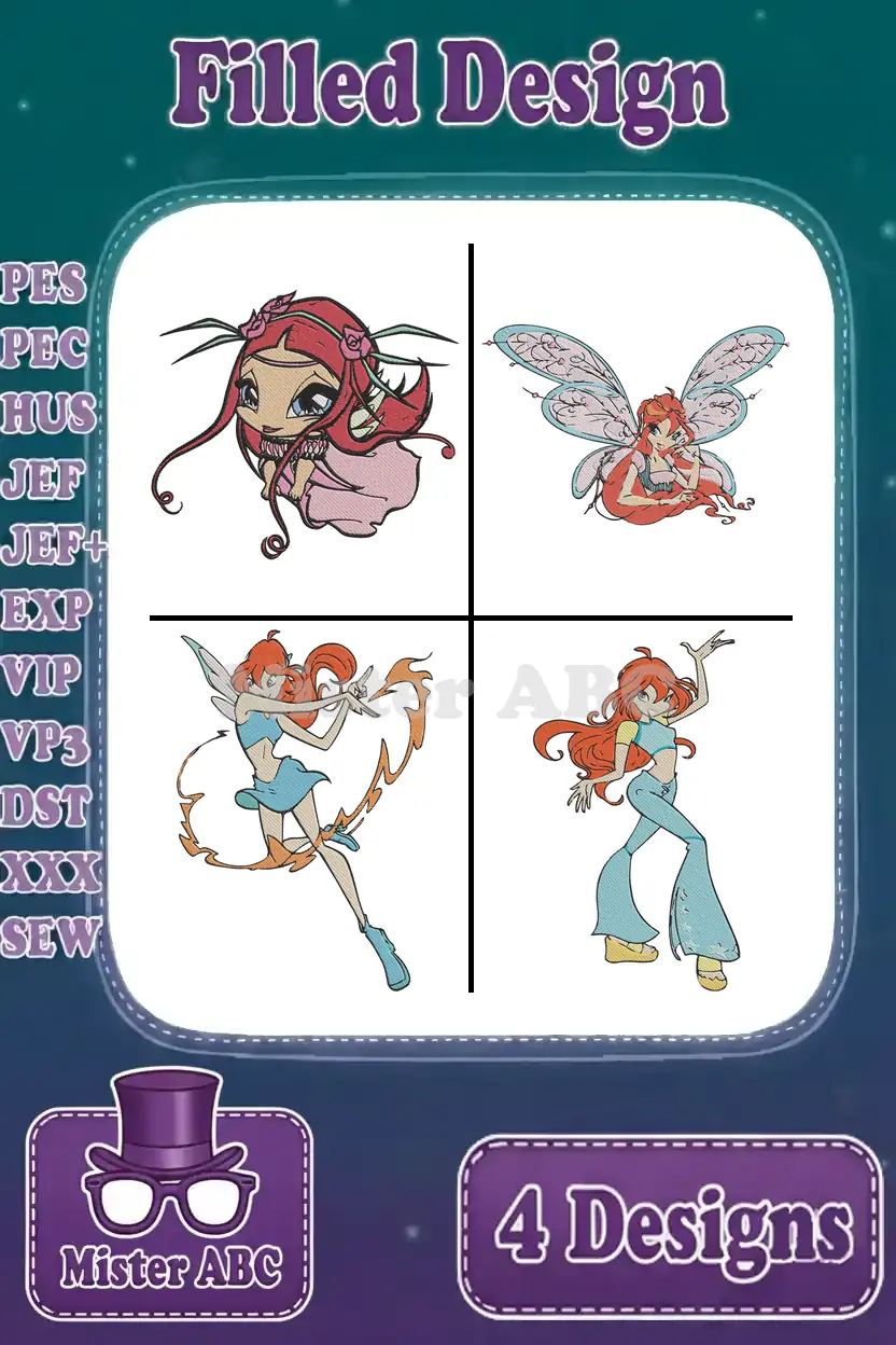 Winx Club Bloom Fairy Of The Dragon Flame Various Transformations And Poses – Filled Embroidery Design