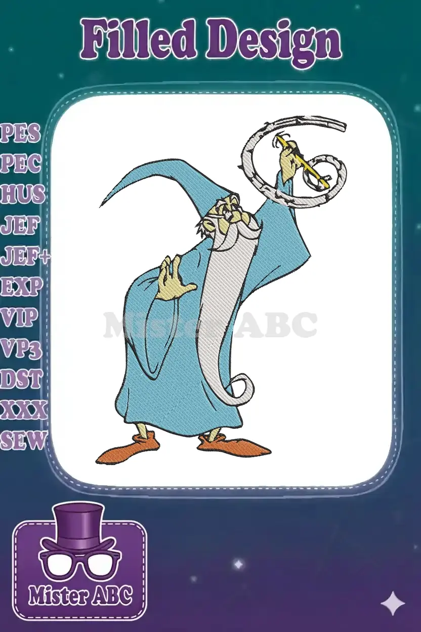 Wise Old Wizard with Scroll and Quill Embroidery Designs