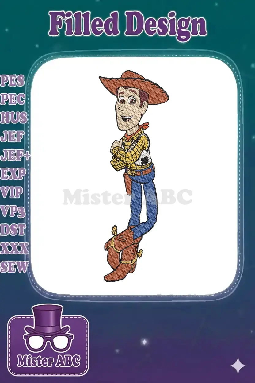 Woody Toy Story Cowboy Sheriff Smiling Character Embroidery Designs