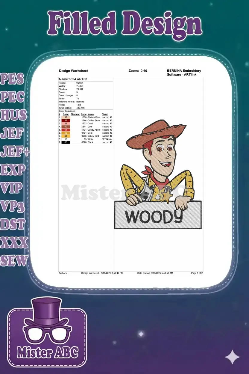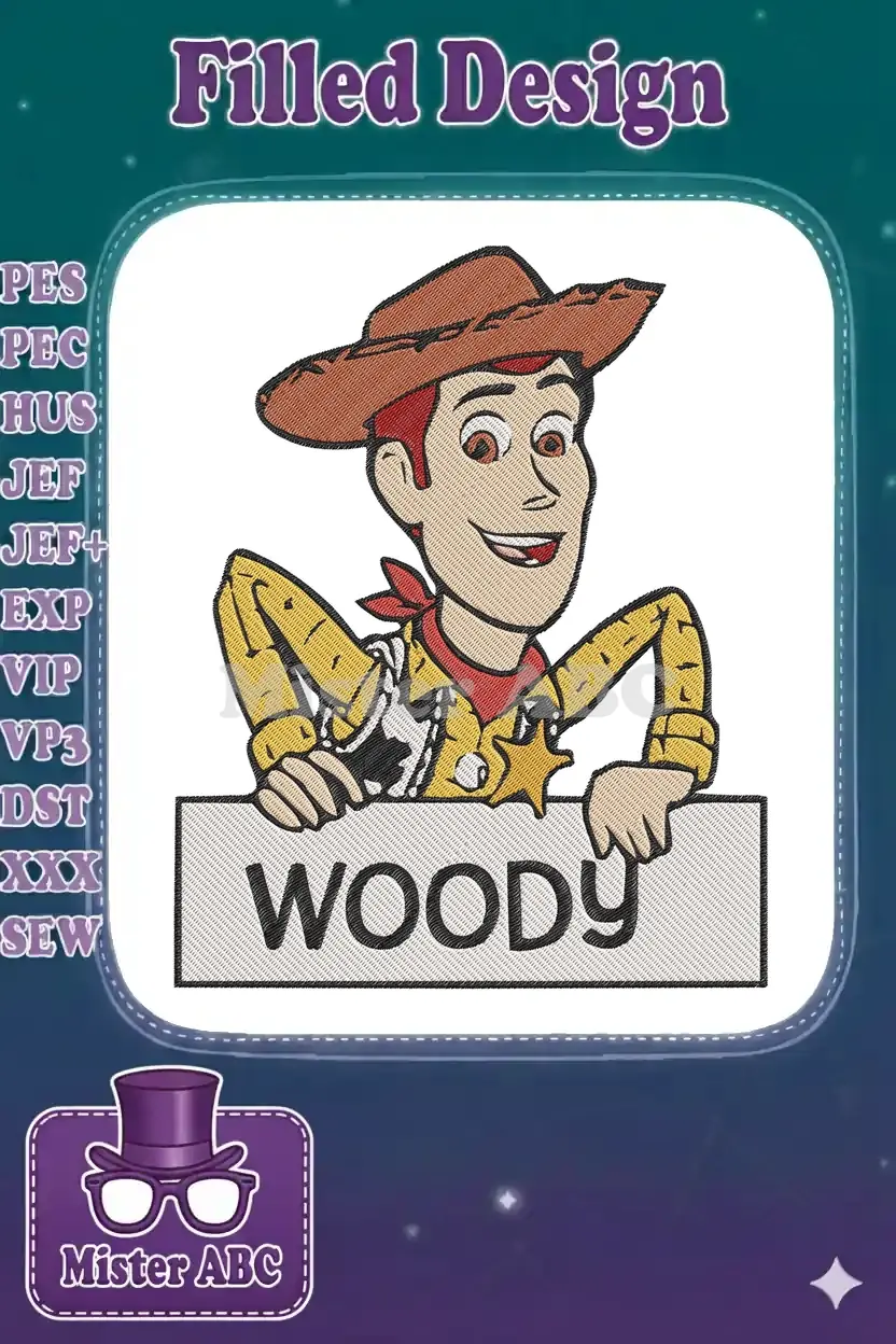 Woody Toy Story cowboy character embroidery designs for kids