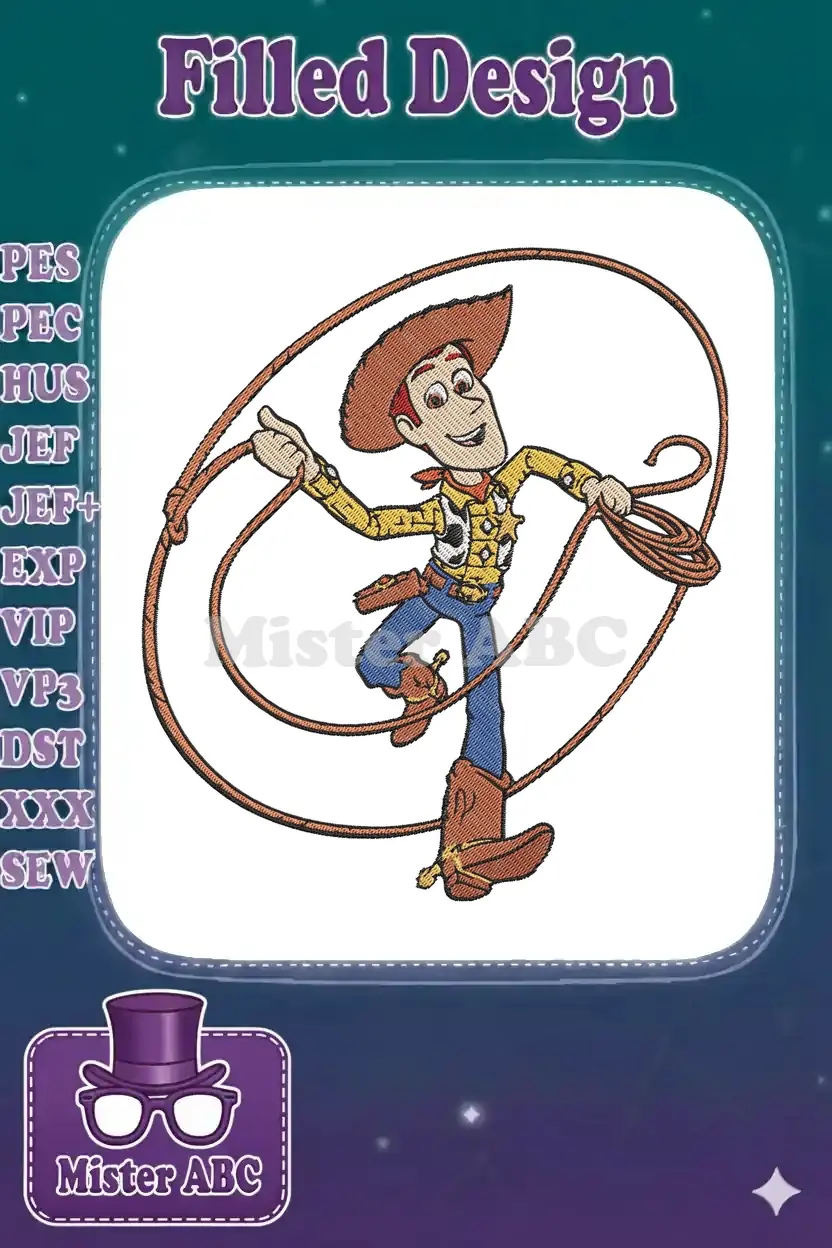 Woody Toy Story Cowboy Lasso Character Embroidery Designs