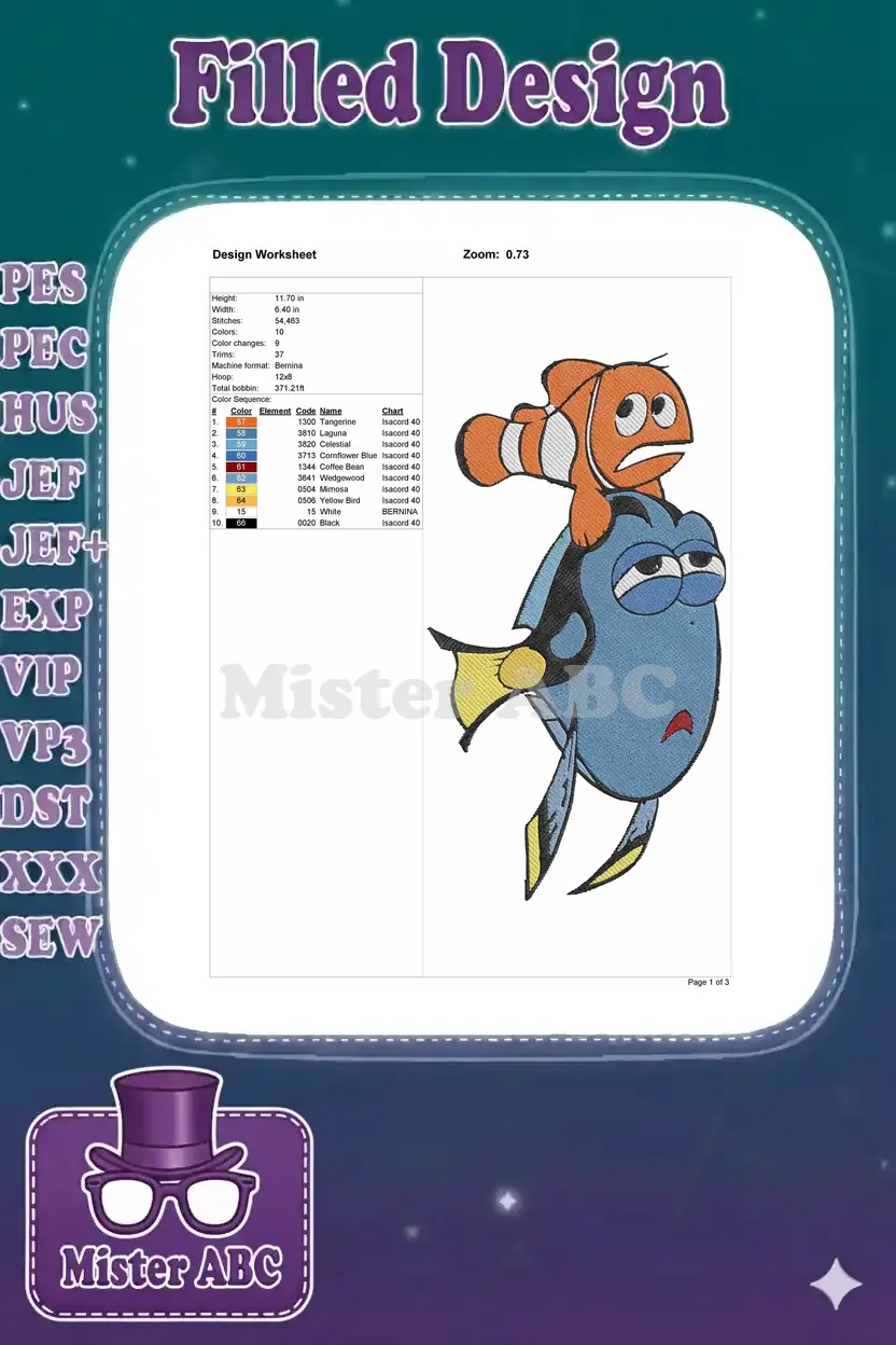 Worried Nemo Riding Tired Dory Clownfish Blue Tang Embroidery Designs