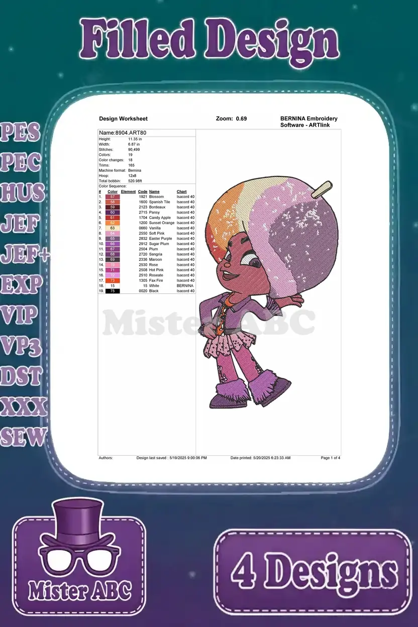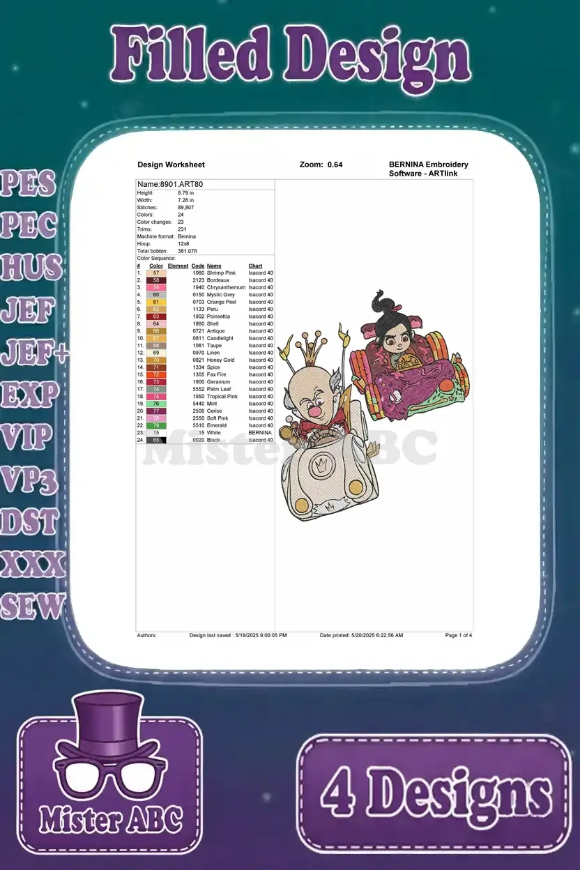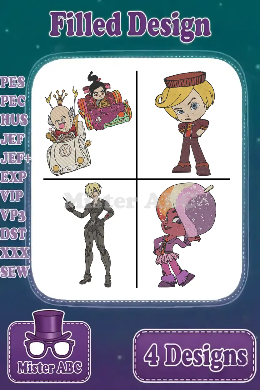Wreck It Ralph King Candy Sergeant Calhoun Vanellope And Taffyta Muttonfudge – Filled Embroidery Design