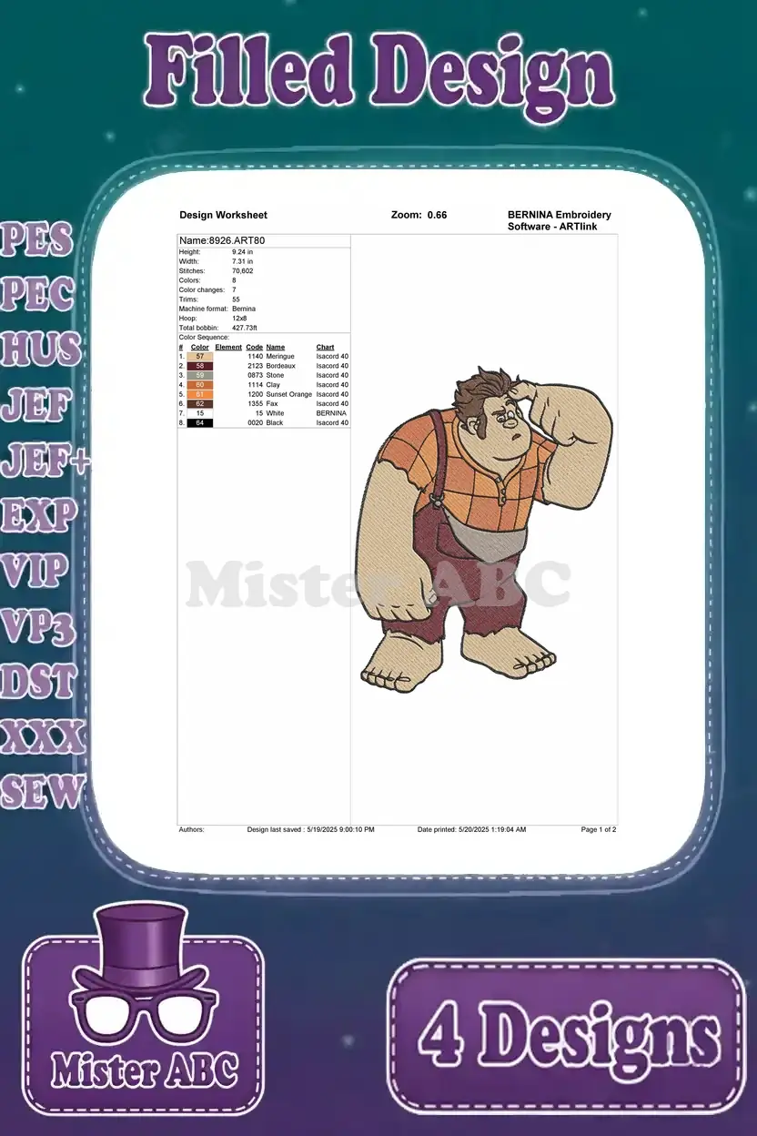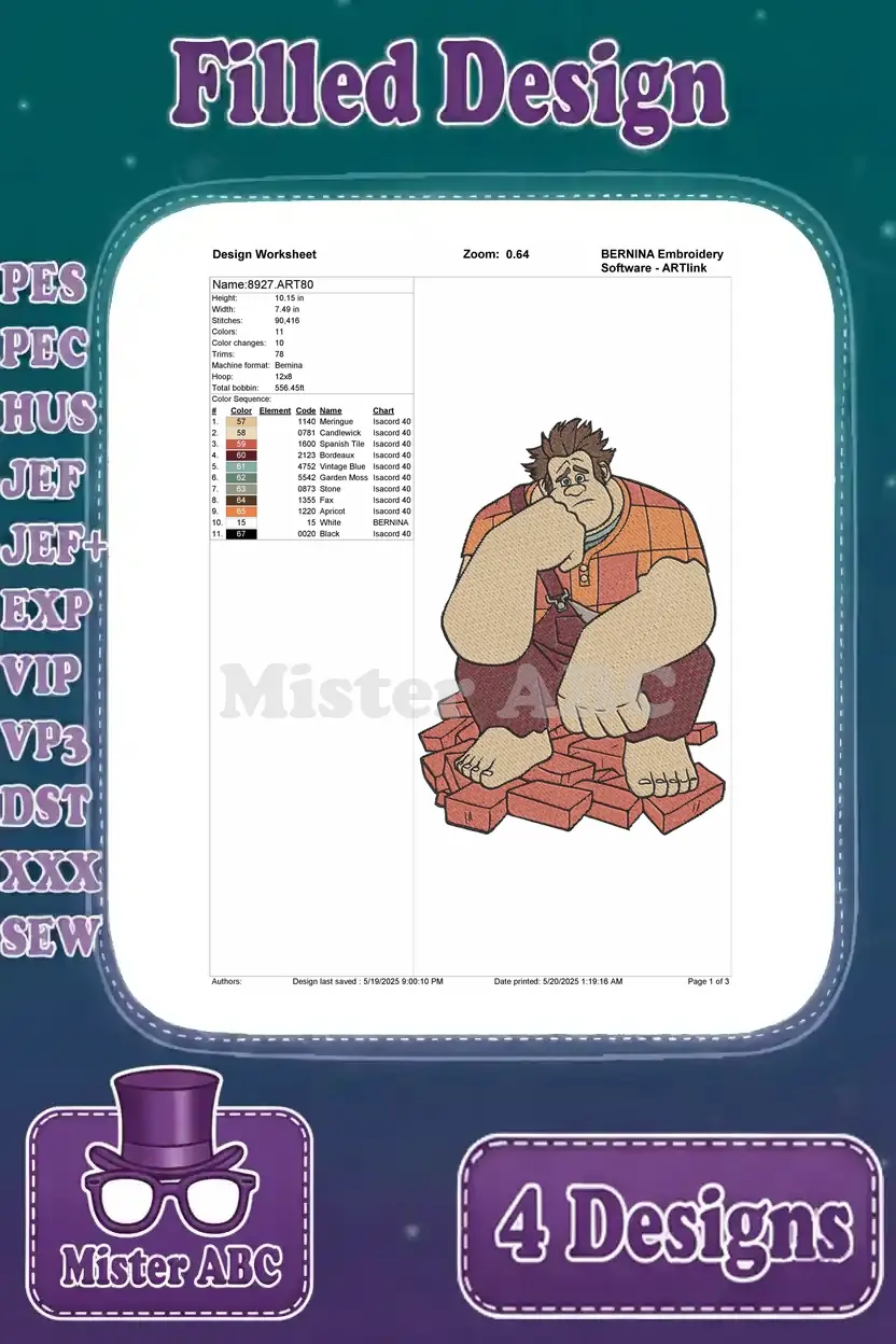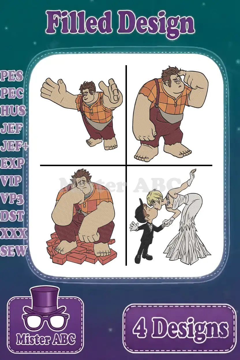 Wreck It Ralph – Ralph With Broken Bed And Sergeant Calhoun And Fix It Felix Jr Wedding – Disney Movie Scenes – Filled Embroidery Design