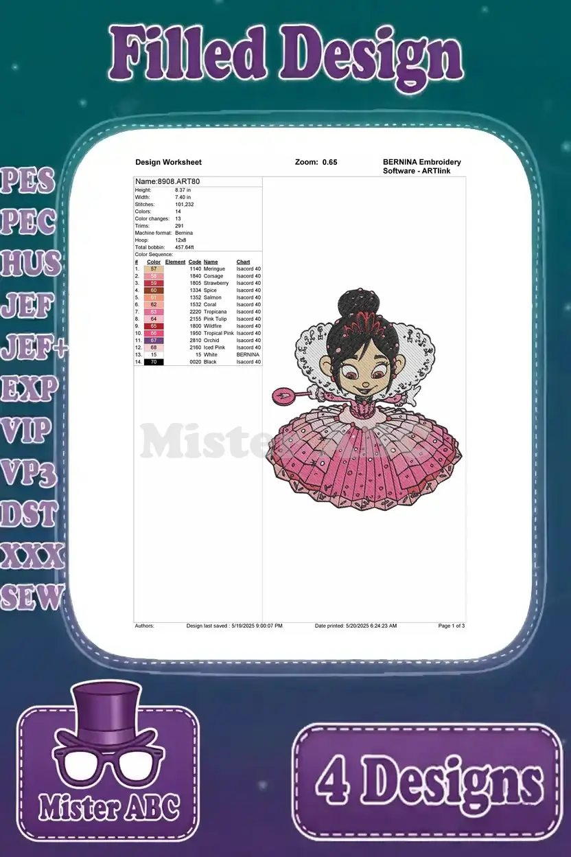 Wreck It Ralph Sugar Rush Racers Vanellope Taffyta Candlehead And Gloomy Glob – Filled Embroidery Design – Instant Download