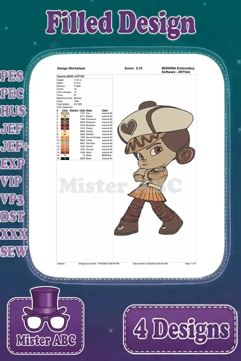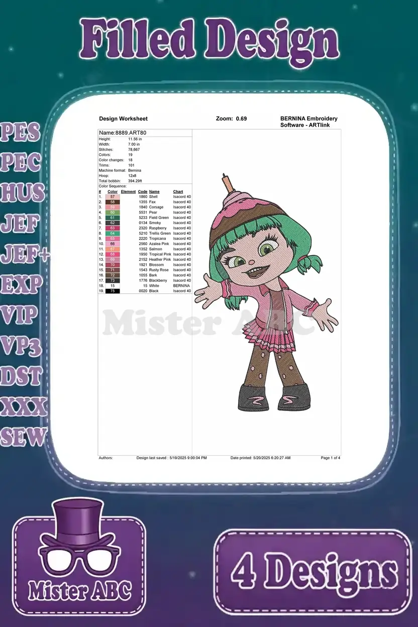 Wreck It Ralph Vanellope Taffyta Fix It Felix Jr And Sour Bill Characters - Filled Embroidery Design - 8891