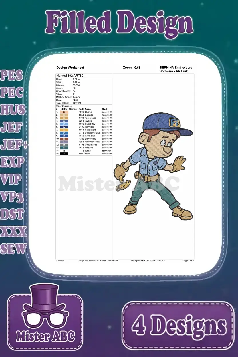A charming bundle of four vibrant filled embroidery designs featuring beloved Wreck-It Ralph characters, perfect for fans.