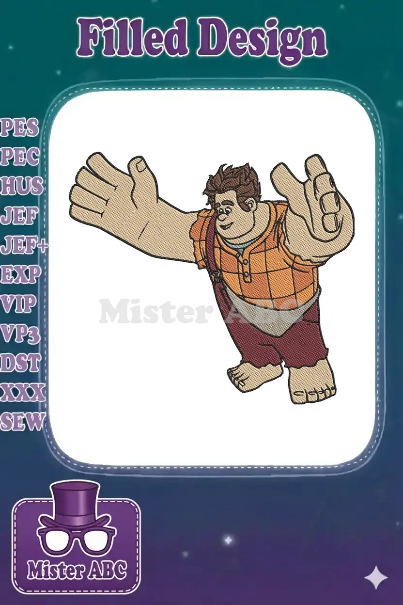 Wreck-It Ralph Smiling with Arms Outstretched Embroidery Designs