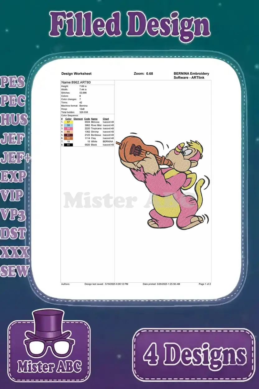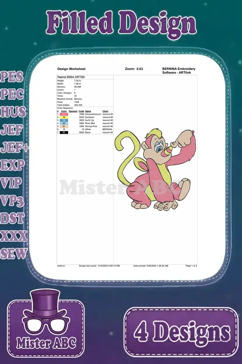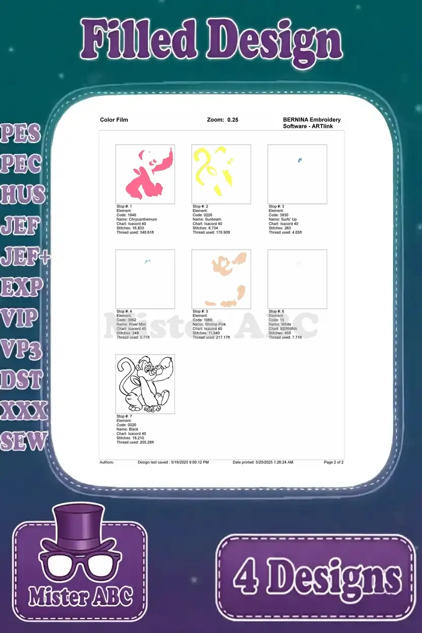 Delightful Boots embroidery bundle featuring four charming poses, perfect for fans of the adventurous monkey. Add playful charm to any project.