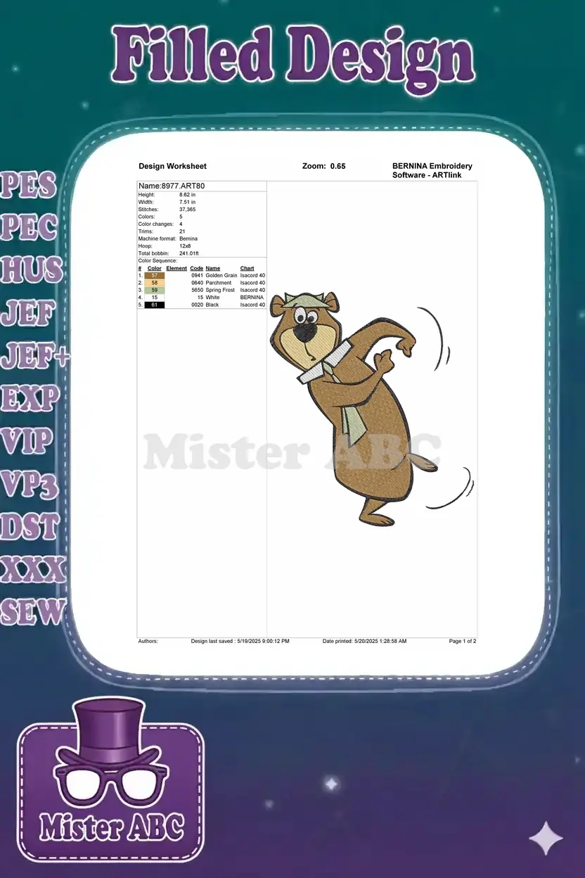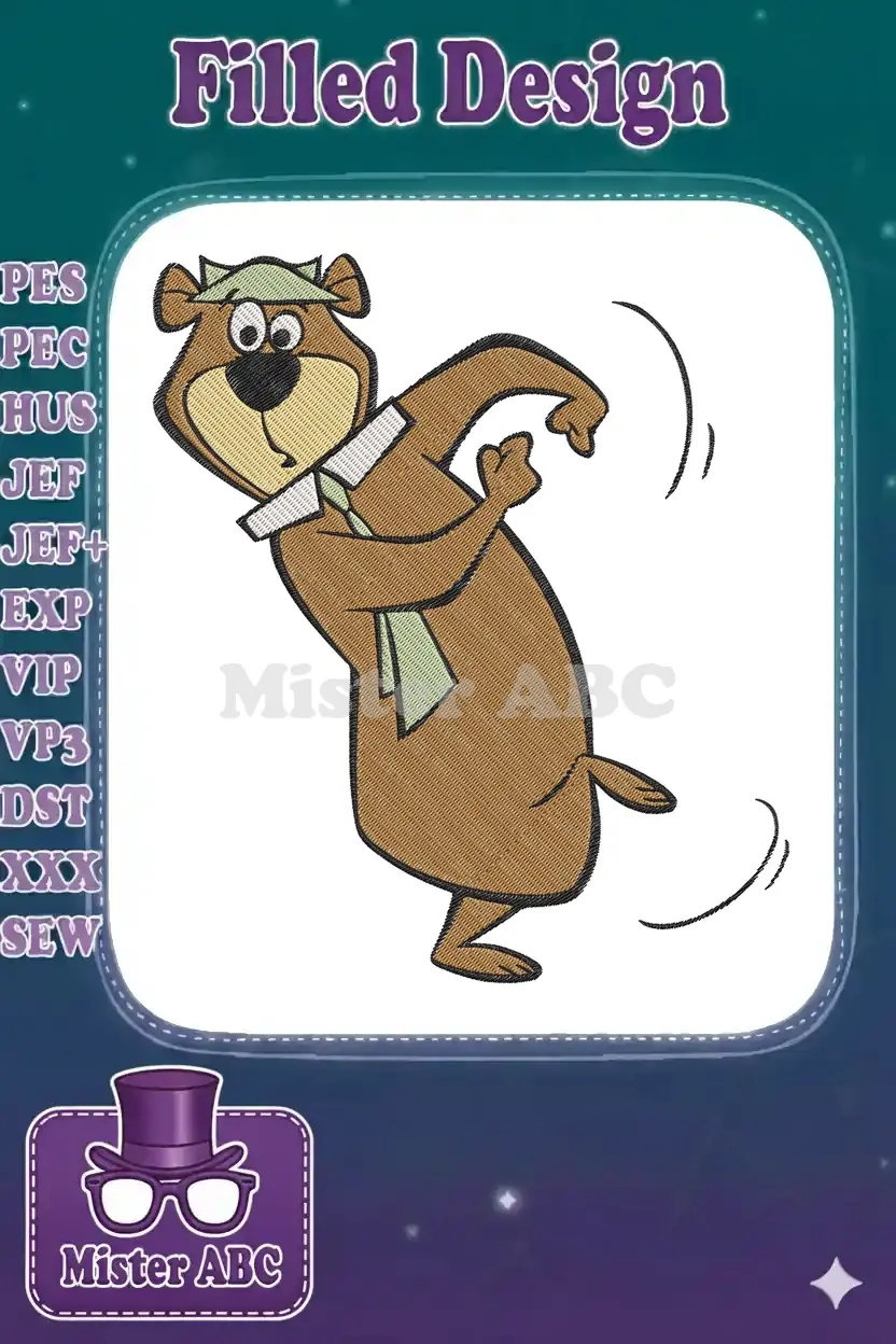 Add a touch of nostalgic fun with this vibrant Yogi Bear embroidery design, capturing his playful personality perfectly.