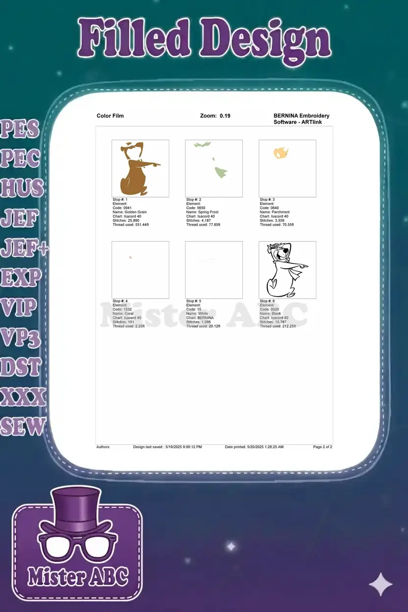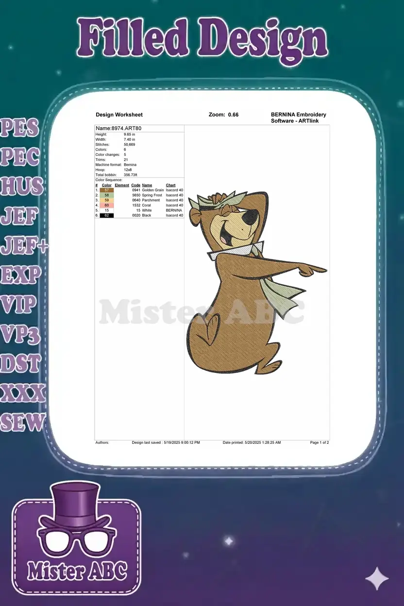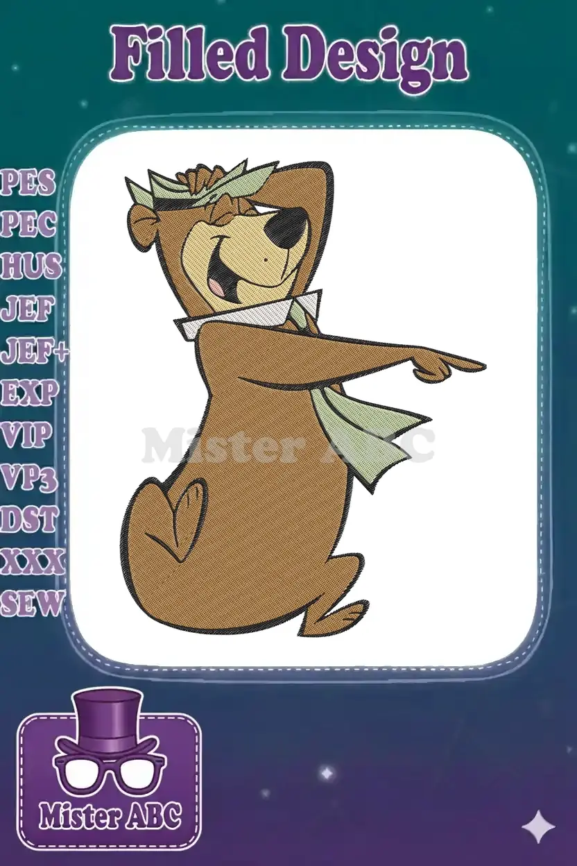 Bring classic cartoon charm to your projects with this delightful Yogi Bear embroidery design, perfect for fans of Hanna-Barbera.