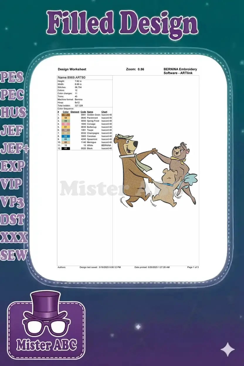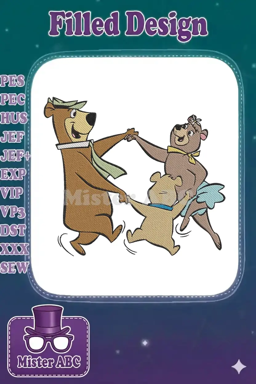 Yogi Bear Cindy Bear Boo Boo dancing family embroidery designs