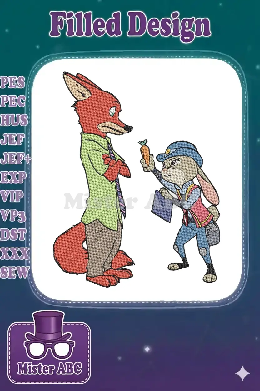 Zootopia Nick Wilde Judy Hopps carrot recorder embroidery designs